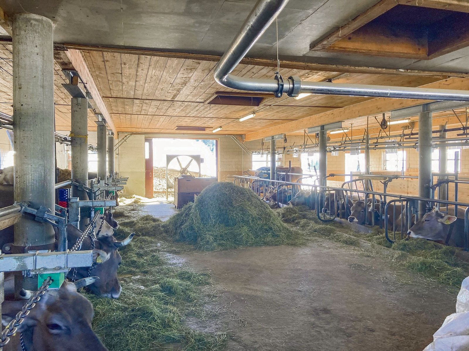 Am Nachmittag ging es ins rund acht Kilometer entfernte Oberhelfenschwil, wo Ueli Tanner auf 880 m ü. M. einen Milchviehbetrieb mit 10 Hektaren bewirtschaftet. Die Milch seiner 16 Kühe ist für die Herstellung von Appenzeller Käse bestimmt. Auch er hat seinen Anbindestall vor ein paar Jahren modernisiert.