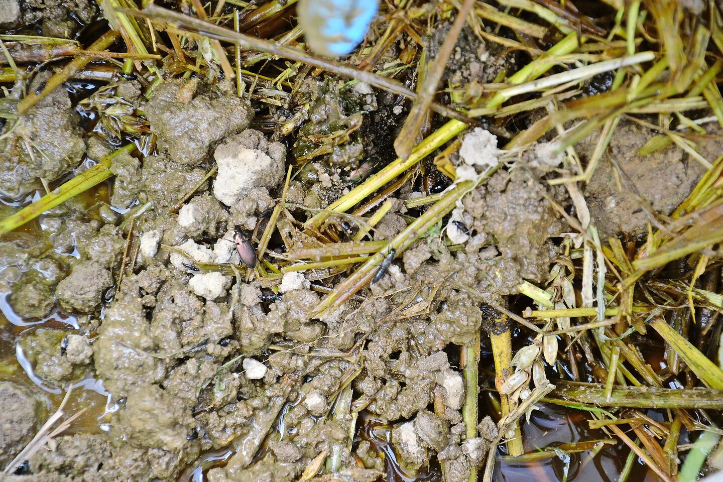 In einem frischen Kuhfladen oder den Hinterlassenschaften anderer Nutztiere leben verschiedene Insekten. Als erstes fallen die umgangssprachlich als «Wasserkäfer» bezeichneten Sechsbeiner auf, da sie bei einer Störung rasch das Weite suchen. Sie sind rund, klein, haben einen glänzenden Panzer und werden in der Regel nicht zu den «echten» Mistkäfer gezählt, da sie sich nur als Adulte vom Haufen ernähren. Die Larven leben räuberisch. [IMG 6]
