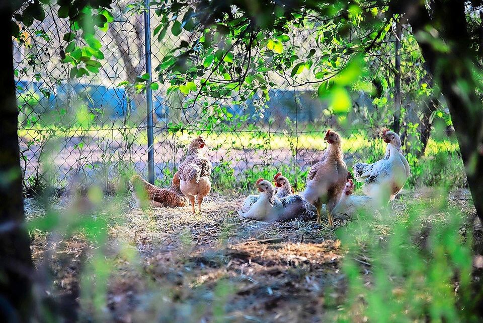- Schatten im Auslauf: Am besten durch Bäumen oder Buschwerke. Alternativ eignen sich Sonnenschirme oder -segel, idealerweise dort, wo die Tiere gerne staubbaden.