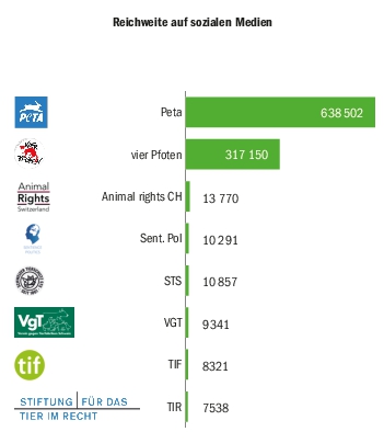 Obwohl sie alle im Grunde dasselbe Ziel verfolgen, unterscheiden sie sich in ihren Aktivitäten, Schwerpunkten und Reichweiten. Manche Tierschutz- und Tierrechtsorganisationen laden zu Veranstaltungen ein, andere gehen gezielt politisch vor. Allen Organisationen gemeinsam ist, dass sie informieren oder aufklären wollen, wie folgende Übersicht über acht bekannte Gruppierungen zeigt.