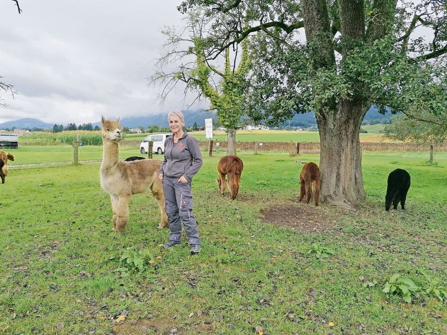 Die Vermarktung der Wolle läuft Hand in Hand mit dem Angebot von Aktivitäten mit den Alpakas. Einerseits kann man auf der «Funrange» Spaziergänge mit den Tieren buchen und auf Wunsch auch Kindergeburtstage oder Firmen- und Vereinsevents. Diesen Sommer bot die Züchterin in Zusammenarbeit mit Alpaka-Erlebnisse auch Alpaka-Yoga und Malen mit Alpakas an.