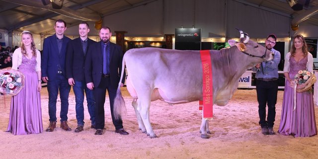 Bei den Red Holstein überzeugten vor allem die Stiere Rebel, Alpha und Power. Vom seinerzeit hochgejubelten Stier Star gab es nichts zu sehen. Als Siegerkuh wählte Jamie Black die Rubels-Tochter Kati von Pharisa und Jaquet aus Estavannes FR. Bei Swiss Fleckvieh, die am Freitag von Simon Eichenberger juriert wurde, gab es auf dem Podest viele bekannte Schaukühe zu sehen: Siegerkuh wurde hier Kilian Nevada von Daniel und Adelheid Graf aus Bleiken BE. Reserve wurde die unverwüstliche Schwarzbach Aslan Hanova von Florian Matter aus Rubigen BE und den dritten Platz sicherte sich die Kilian-Tochter Strubelblick Kilian Mayila von Fritz Wenger aus Pohlern BE.