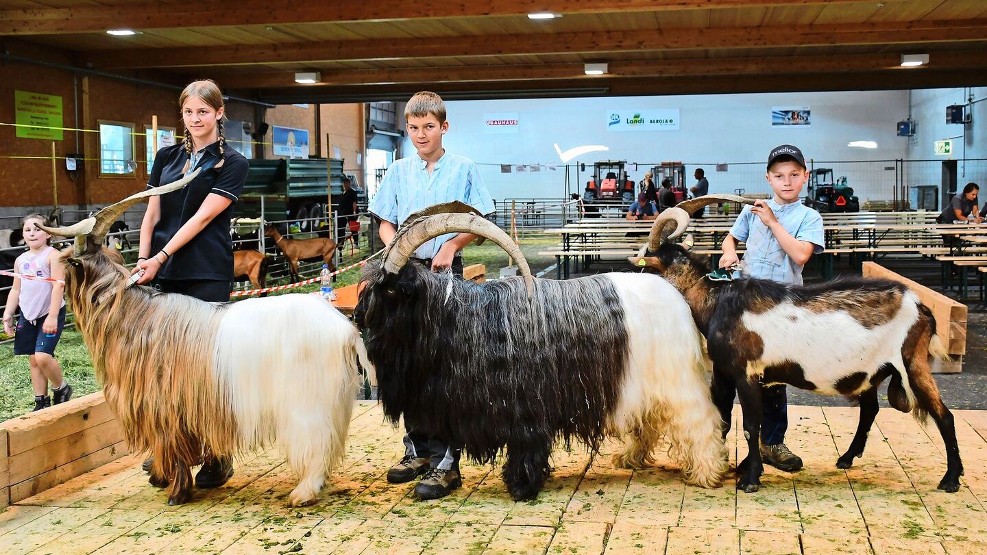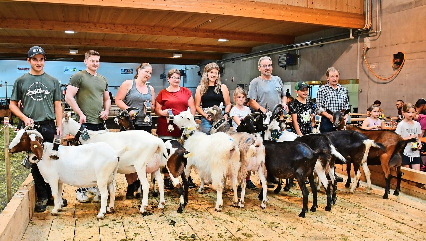 Bei uns noch weniger verbreitet sind Burenziegen. Die Tiere der bekannten Fleischrasse, die ursprünglich aus Südafrika kommt, fallen durch ihre langen, herabhängenden Ohren auf. Mister und Miss heissen Fien und Mia und kommen aus der Zucht von Cedric Schelbert aus Ibach SZ. Ein Stelldichein fürs Siegerfoto gaben sich die Rassenschönsten und ihre stolzen Züchter am Schluss der Schauparade.