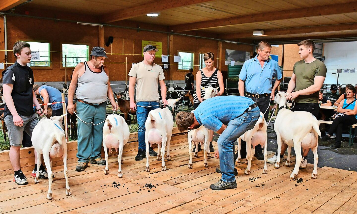 Nachdem sich die Züchterinnen und Züchter einen Überblick zu den ausgestellten Tieren verschaffen und fachsimpeln konnten, standen um 15 Uhr die Wahlen der Mister, Schöneuterziegen und Rassensiegerinnen auf dem Programm. Meist willig liessen sich die vierbeinigen Kandidatinnen und Kandidaten von ihren Besitzern aufs Podest führen. Spannung herrschte, während die Experten die Tiere von allen Seiten unter die Lupe nahmen und anschliessend die Wertung durchgaben.