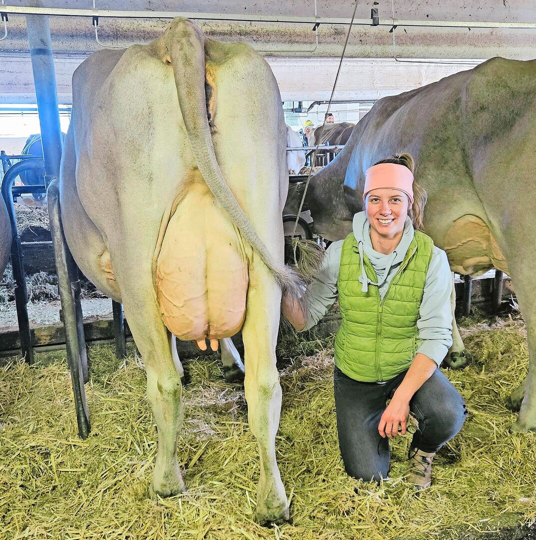 Caluna komme ihrem Zuchtziel ganz nahe. Die rahmenstarke und feingliedrige Zweitmelkkuh überzeuge nicht nur mit einem sehr korrekten Becken, auch ihre Milchqualität und der Gehalt seien überzeugend. Der aktuelle Betriebsdurchschnitt liege aktuell bei rund 8500 kg Milch. Eine Leistungssteigerung strebt die gelernte Landwirtin nicht an, denn die Kühe sollten sich ja auch weiterhin auf der Alp bewähren.