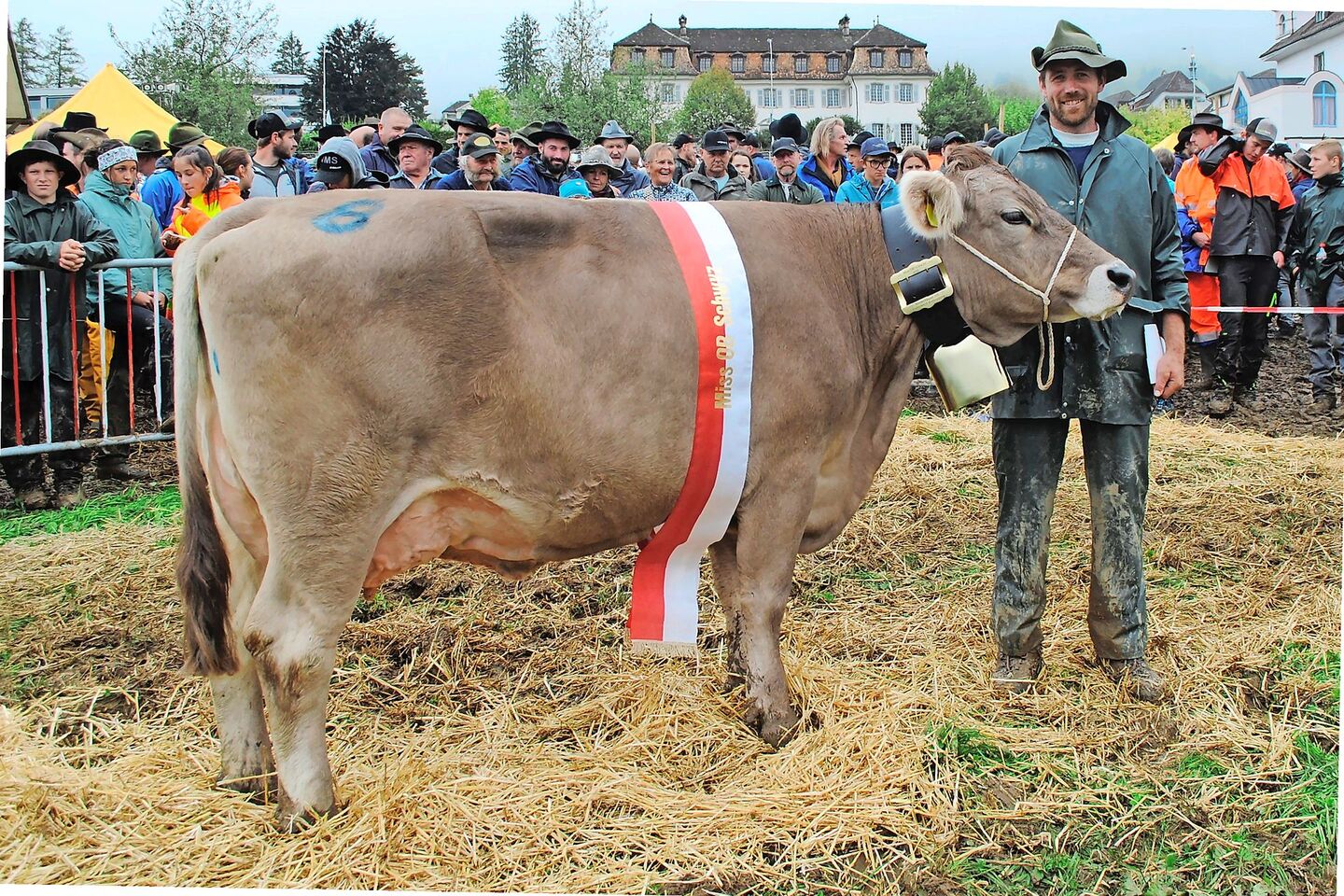 Gleich einen Dreifachtriumph durfte Roland Kälin aus Euthal bei den Misswahlen feiern. Die neue Miss Einsiedeln heisst Phil Paris, befindet sich in ihrer zweiten Laktation und war im Vorjahr bereits Vize-Miss. Der Obwaldner Viehschau-Experte Marcel Kiser zeigte sich von der Ausnahmekuh beeindruckt. Sie überzeugte in allen Belangen – vom Format über die Beckenlage bis hin zum Euter, was ihr zusätzlich den zweiten Rang bei den Schöneuter-Wahlen der mittleren Kühe einbrachte. Sie siegte vor der Viertlaktierenden Pete Pamina und Jeff Iris. Mit Pete Patty, der Miss des Vorjahres, holte sich Kälin auch noch den Schöneuter-Titel bei den älteren Kühen. Bei den mittleren Kühen gewannen Dreamer Darling von Alois Steiner, Alpthal, und bei den jüngeren Kühen Dreamer Caluna von Beat Rohrer, Bennau, den begehrten Schöneuter-Titel.