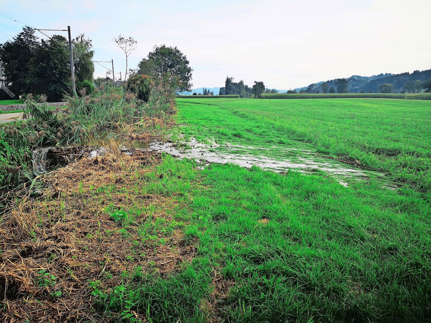 Vernässungen: Höhe des Biberdamms mit Elektrozaun regulieren, ihn verschieben oder das Drainagesystem anpassen. Alternativ LN in eine Feuchtwiese umwandeln, Grünland statt Ackerfläche, Gewässerraum ausscheiden und Revitalisierung.