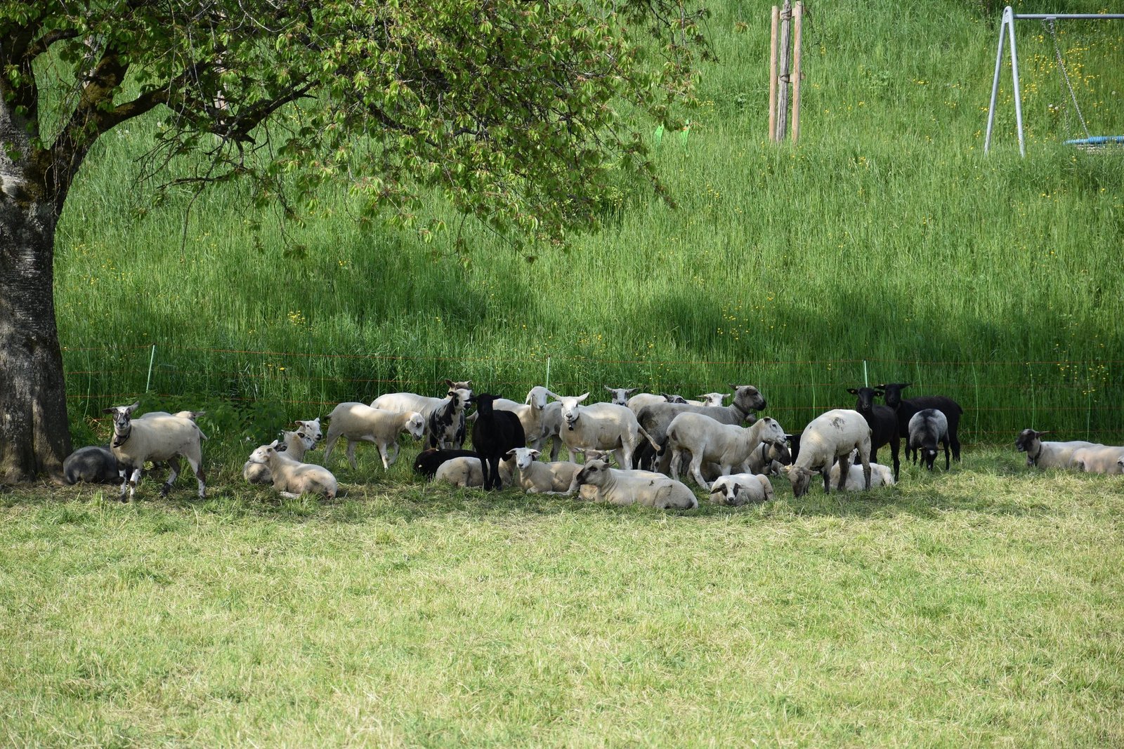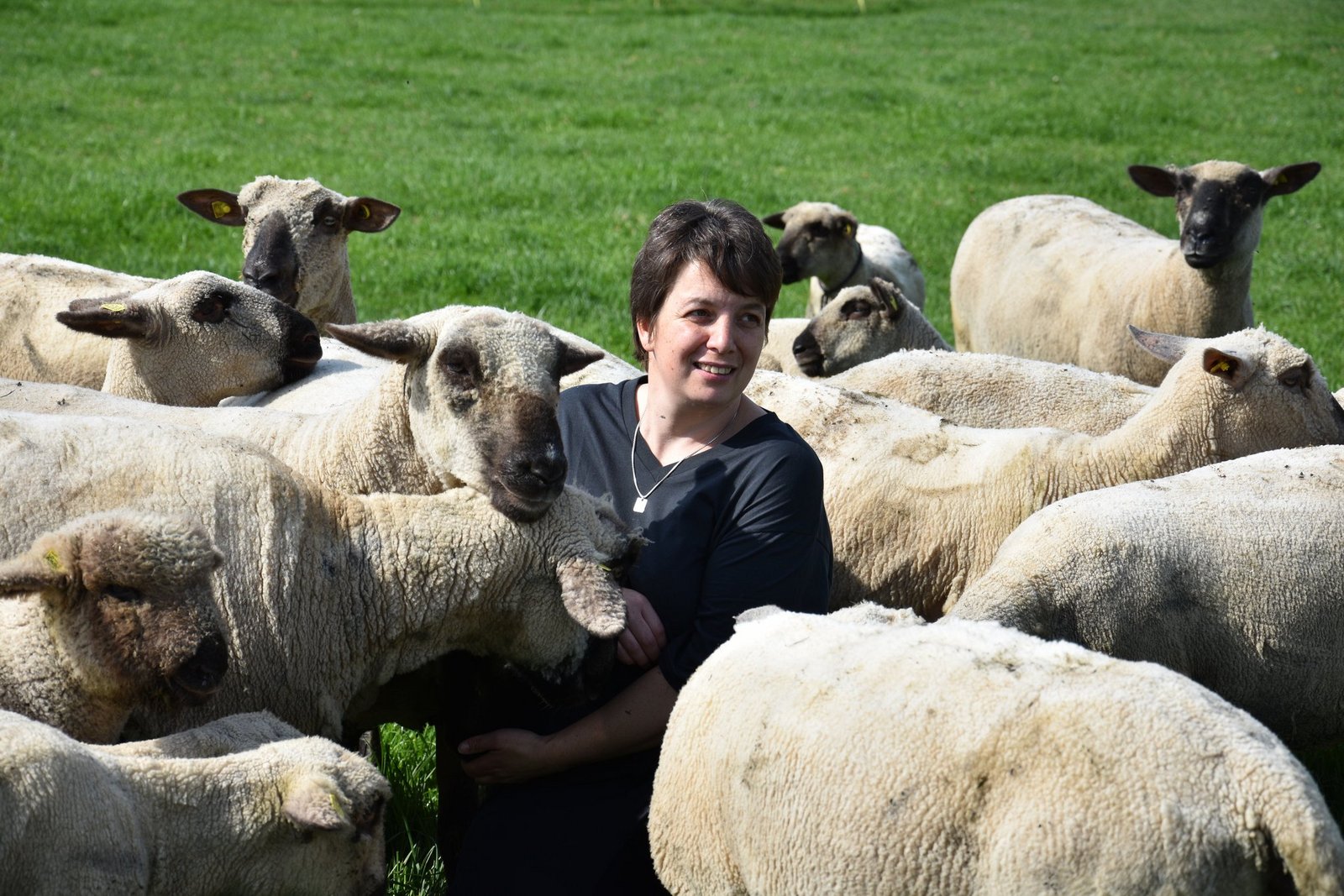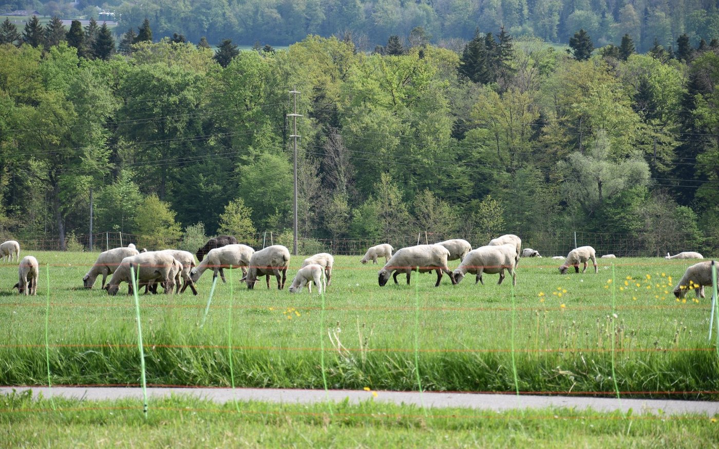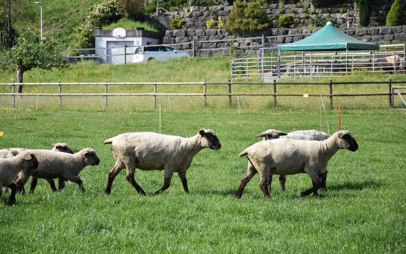 Auf einen Zuruf schart sich die ganze Herde braunköpfiger Fleischschafe um Angela Oesch. «Einen Hund brauchen wir nicht», erklärt Ruedi Brunner, während seine Partnerin in die Hocke geht um im wolligen Meer beinahe verschwindet. Der Vierbeiner würde die Schafe nur unruhig machen, ist Brunner überzeugt.