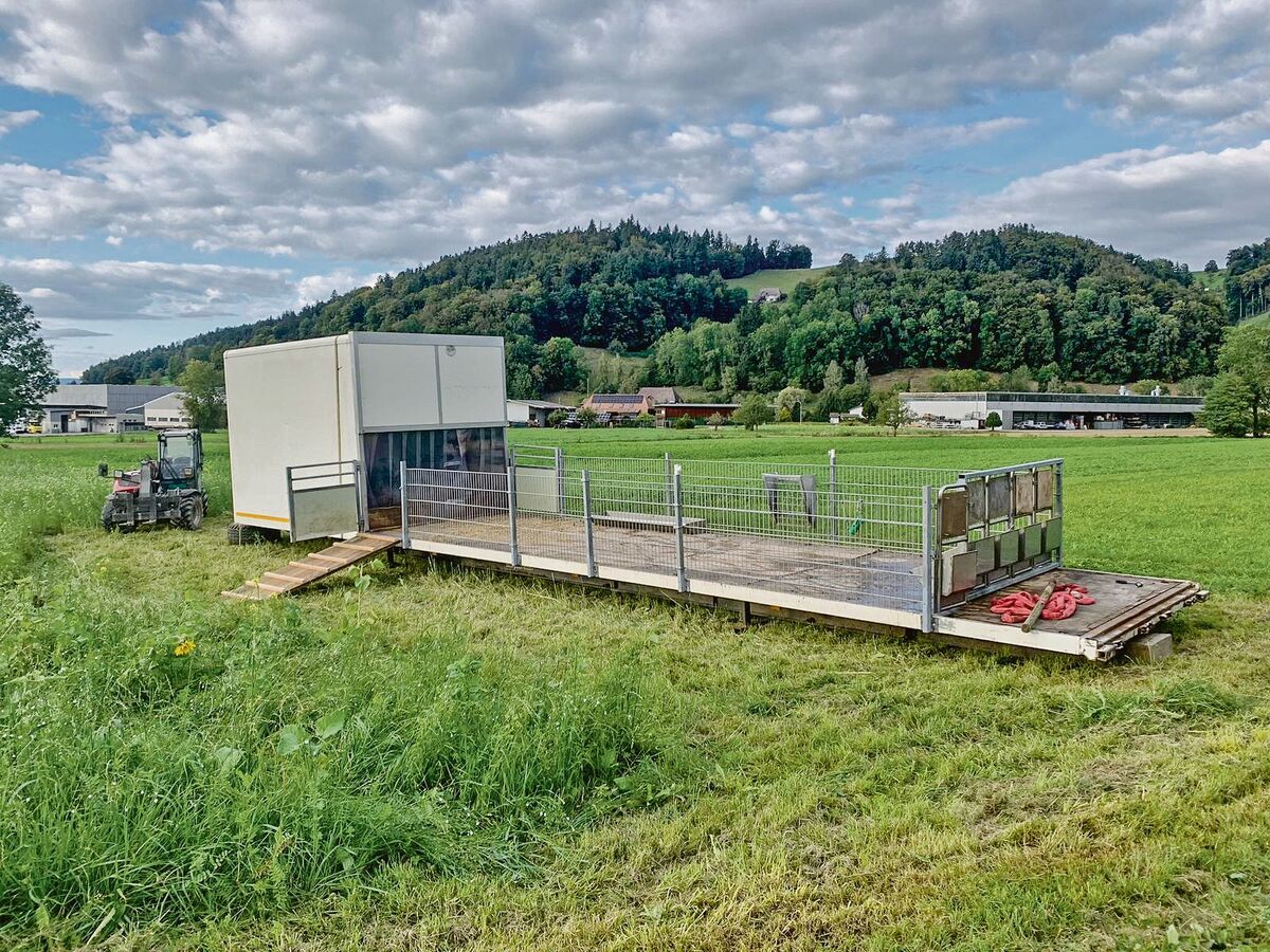 Andreas Hirschi: Die machen wir mit einem Schlachtanhänger. Mit diesem biete ich jede Art von Hoftötung für Schweine, Rinder, Schafe und Ziegen an; auch Notschlachtungen. Das Abdeckungsgebiet hat einen Radius von 100 km.