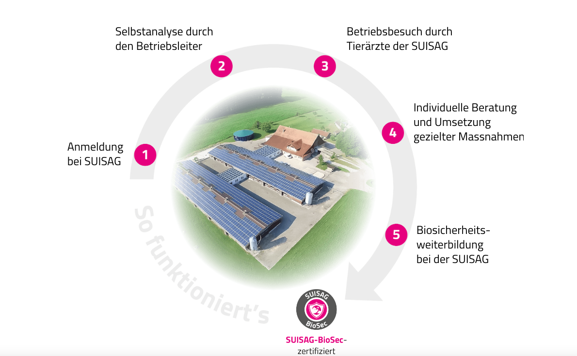 Mit einer Erhöhung der Biosicherheit lasse sich sowohl das Risiko einer Einschleppung und Ausbreitung von Krankheiten (Stichwort Afrikanische Schweinepest ASP) senken, als auch das Tierwohl erhöhen. Dies verspricht die Suisag im Zusammenhang mit dem neuen Zertifikat «Suisag BioSec», das in Zusammenarbeit mit der Versicherung Schweizer Hagel und der Firma Zaunteam lanciert worden ist.
