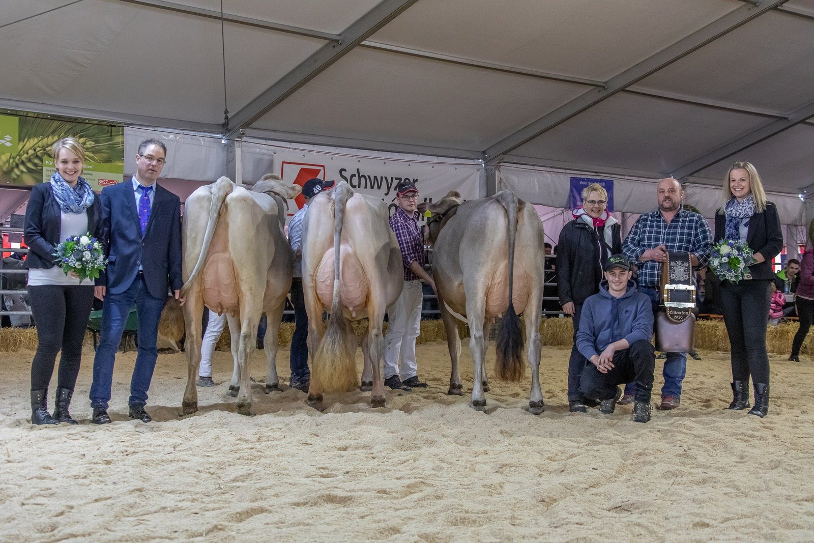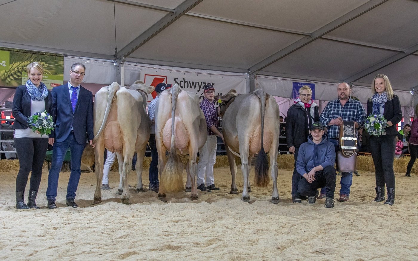 Die Schwyzer Braunviehzüchter sind für ihre schönen Euterkühe bekannt. Das zeigte sich auch in den drei Schöneuterwettbewerben, wo jeweils mehrere ganz starke Euter auszumachen waren. Die beiden Richter Stefan Knecht und Paul Caduff waren bei ihrer Arbeit voll des Lobes. Kein einziger Schwyzer Züchter konnte in der Euterkonkurrenz mehr als einen Podestplatz gewinnen, die Spitze war enorm breit. Bei den Erstmelken gewann Victor Gloria von der GG Plattenbach, Muotathal. Die zweitlaktierende Superstar Stonfire von Markus Kennel, Steinerberg setzte sich dank ihres extrem hohen Hintereuters bei den mittleren Kühen durch. Und bei den Altkühen gewann Salomon Siere von Fredi Diethelm, Tuggen, dem neuen Präsidenten der Schwyzer Viehzüchter.