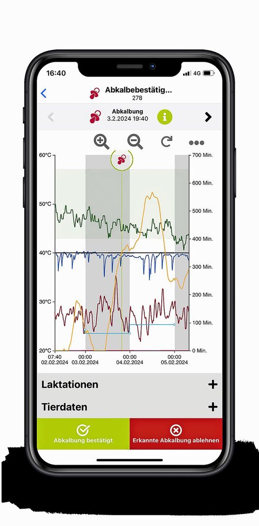 So lassen sich Krankheiten wie Milchfieber, Ketose oder Mastitis oft schon im Frühstadium erkennen und meist eine klinische Erkrankung verhindern. Ebenso informiert der Bolus über Brunst sowie den Abkalbezeitpunkt und weist auf Aborte hin.
