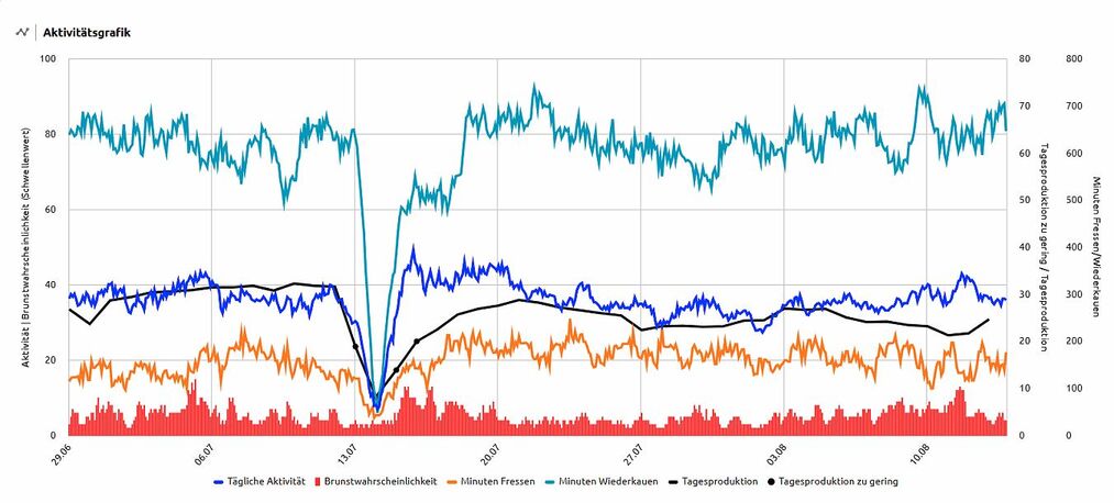 Dieses Jahr hatte der Landwirt dieses Jahr genau einen akuten Viertel. «Alle anderen konnte ich noch vorher präventiv abwenden. Den Antibiotikaverbrauch konnte ich so definitiv senken», sagt der Berner. Auch Stoffwechselstörungen habe er meist frühzeitig auffangen können. Auch nach einem Kaiserschnitt sei das System sehr hilfreich gewesen, da das «Fieberthermometer» sozusagen in der Kuh «mitläuft».