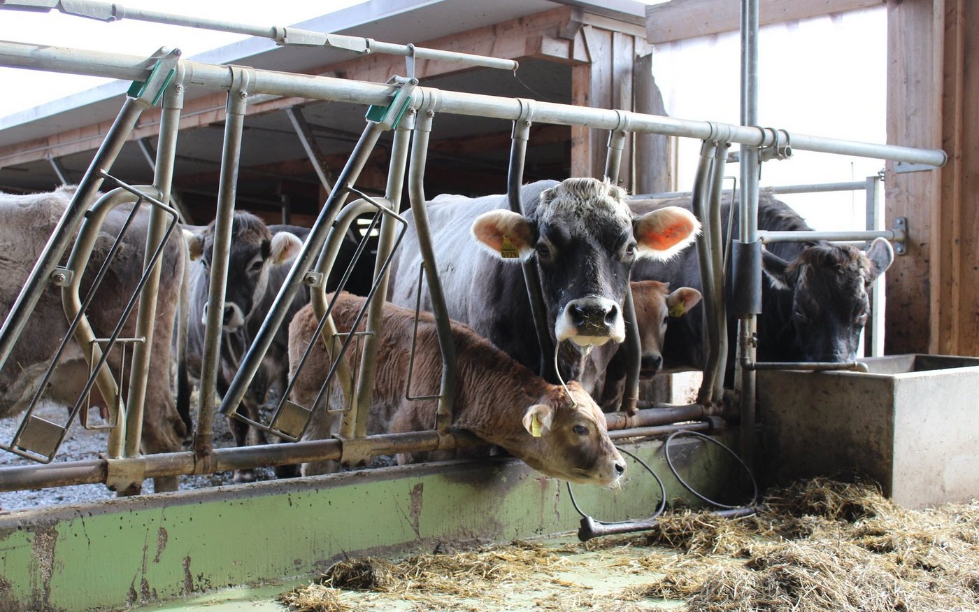 Das Anhängen eines zweiten Kalbes an eine Kuh geschieht nicht von selbst und erfordert manchmal viel Geduld. Es braucht auch eine geeignete Infrastruktur, um z. B. die Kühe fixieren zu können.