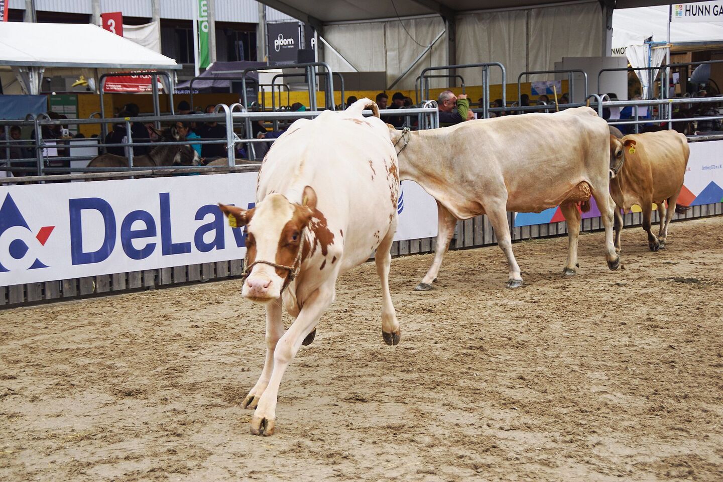 Eigentlich sind Kühe eher gemütliche Tiere, aber beim Auslauf in der Arena liess sich auch ihre andere Seite beobachten. Kaum in der Arena, fingen einige Kühe an zu rennen und Sprünge zu machen. Nicht angebunden zu sein, viel Platz und einen weichen Sandboden zur Verfügung zu haben, regte sie offensichtlich dazu an. Sie würden ihrer Lebensfreude Ausdruck geben, deutete es der Kommentator Christian Manser.