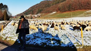 Markus Nyffeler geniesst nach den trüben und kalten Tagen die Wintersonne. Ihn bringt der Wolf nicht aus der Ruhe. Er weiss, dass er seine 800 Schafe nicht einstallen kann. Doch je mehr Schafhalter ihre Tiere in Sicherheit bringen, desto gefährlicher wird es für die Wanderherde. Im letzten Winter wurde die Wölfin F78 mehrfach gefilmt, als sie den Nachtpferch von Nyffeler auskundschaftete. Die Frage ist wohl, wie hungrig ein Wolf sein muss, bis er ein Elektronetz überwindet. Oder wie viel es schneien muss, bis das Netz zu Boden gedrückt wird. Die Schafe, die letzte Woche gerissen wurden, waren von einem Netz geschützt. Doch wer weiss das schon in der nahen Stadt. Berichten die weissen Medien über den neuen Wolf im Mittelland, dann werden die Schafhalter wieder in den Kommentarspalten lesen dürfen, sie müssten halt Zäune stellen und Herdenschutzhunde kaufen.