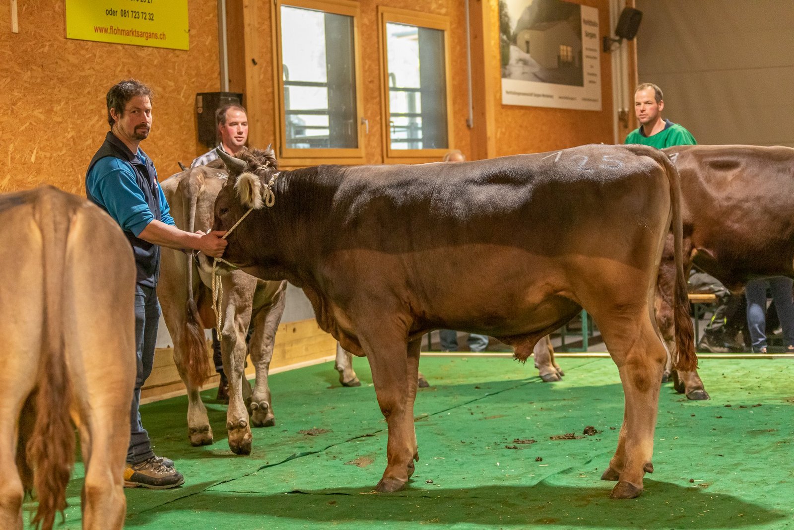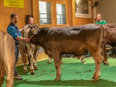 Zudem wurde in der Markthalle Sargans von Züchter Albert Horner aus Ennenda GL mit Zibu der Siegermuni des Eidgenössischen Schwing- und Älplerfest 2025 präsentiert. Nach dem Mittag fand die Milchviehauktion mit Tieren der Zuchtrichtungen BS und OB statt.