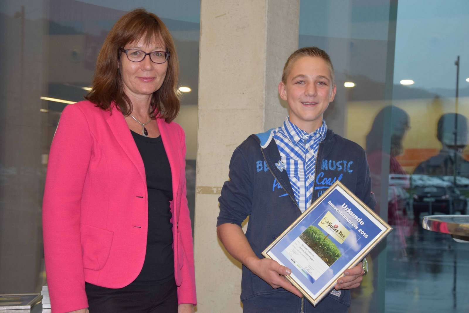 «Ich bin ja noch nicht so alt», sagte der 15-jährige Matthias Gerber, der für seinen Schwader-Drehbock ausgezeichnet wurde. Damit können Schwader und Bandrechen kombiniert werden. Damit sei man bei der Futterernte doppelt so effizent, betont der angehende Zimmermann. Sein Projekt hat er als Abschlussarbeit in der dritten Sek erarbeitet.