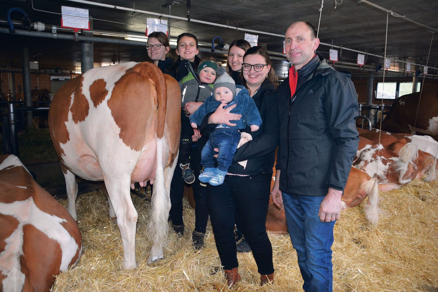 Seine Tiere, insgesamt sind es rund 25 Kühe und 40 Stück Jungvieh, müssen nicht bereits als Erstmelk durchstarten, was die Leistung betrifft. «Wenn eine Jungkuh nicht gleich 6000 Kilo produziert, werde ich nicht nervös», sagte er. Im Gegenteil: Erstmelkkühe, die Ende Winter rasant in die Laktation starten, werden verkauft und gehen nicht auf die Alp. Der Verkauf von Nutz- und Zuchtvieh ist auf dem Betrieb von Bedeutung. Ein knappes Dutzend Tiere verlässt so den Hof, die meisten Käufer sind Stammkunden. Ein bedeutender Teil der Herde wird mittels Natursprung besamt, zwecks Blutauffrischung von zugekauften Stieren. Für Schnider immer noch die reinste Form der Viehzucht, die besonders Freude macht, wenn es dann auch gut herauskommt, wie er schmunzelnd schilderte. Dass die Richtung stimmt, zeigte der eindrückliche Blick in den gepflegten Anbindestall.