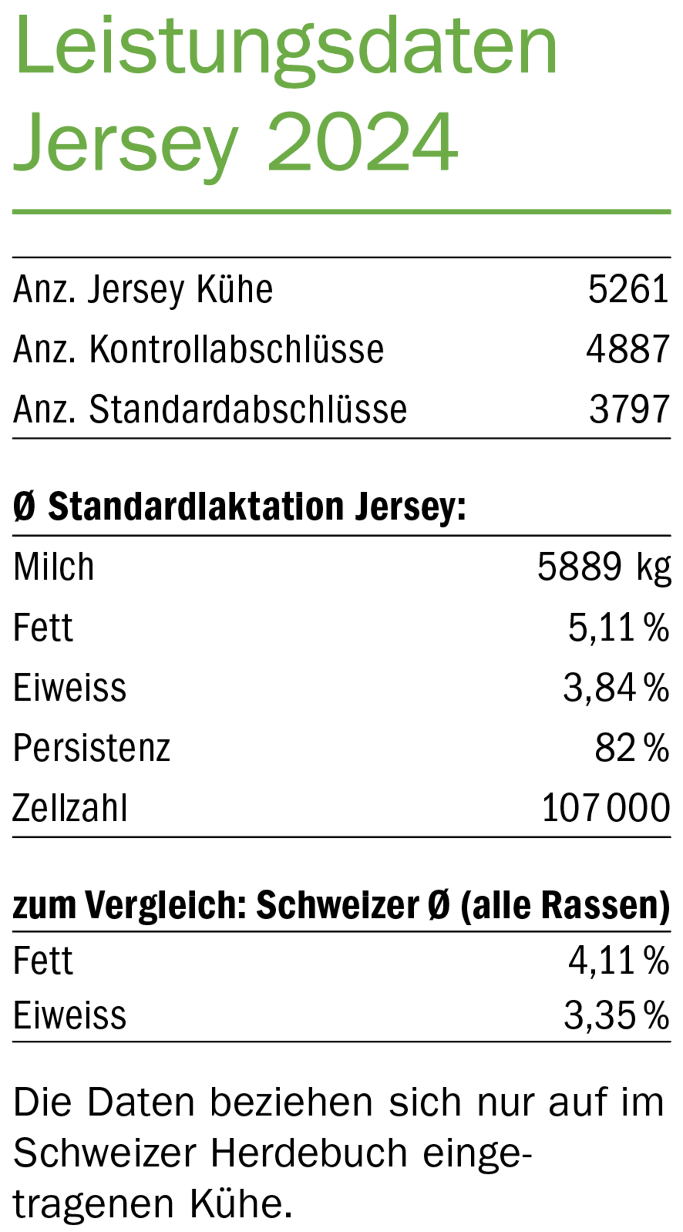 Thematisiert wurde ausserdem der Einsatz von Schweizer Zuchtstieren. Bis dato seien erst Dosen weniger Schweizer Zuchtstiere für die künstliche Besamung erhältlich gewesen. Dies liege an der – mit anderen Rassen verglichen – geringen Anzahl an Jersey-Besamungen in der Schweiz. Daher würde sich ein solcher Stier für Schweizer Vermarkter von Rindersperma wie beispielsweise Swissgenetics kaum lohnen. Nun werden zusammen mit Braunvieh Schweiz, Swissgenetics und Viking Genetics neue Wege erarbeitet.[IMG 2]