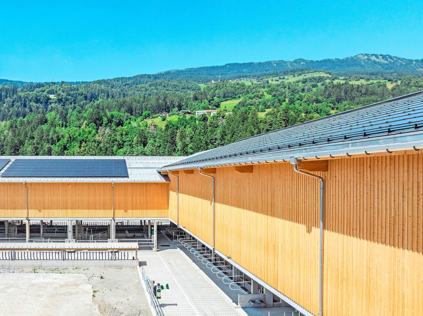 Gebaut wurde in erster Linie für das Rindvieh (64 Milchkühe sowie Rindermast und Aufzucht). Der grosse Stall ist hufeisenförmig angeordnet und besteht seit 1967. Ein Teil wurde bereits 2018 saniert, der Kanton wollte graue Energie möglichst erhalten. Der Rest wurde komplett neu aufgebaut. So entschieden sich die Behörden in einem politischen und verwaltungsinternen Prozess. Milchvieh- und Aufzuchtstall befinden sich im Nord- und Westflügel. Liegeboxen und Fressbereich genügten heutigen Anforderungen an das Tierwohl nur noch bedingt, das 55-jährige Tragwerk und die Jauchegruben wiesen altersbedingte Mängel auf.