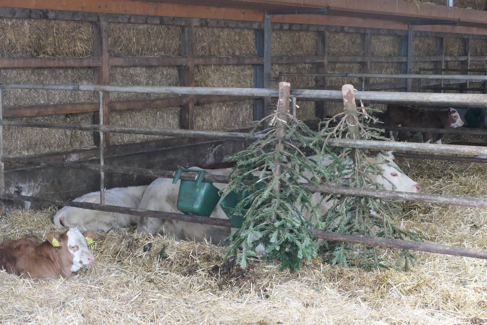 Dazu kommt, dass die ätherischen Öle der Tannennadeln schleimlösende, antivirale und entzündungshemmende Eigenschaften haben. Dies wiederum hilft, Atemwegserkrankungen vorzubeugen, die gerade in der kalten Jahreszeit häufig auftreten. Bei Jungtieren besonders gefürchtet ist die Kälberpneumonie. «Die Tannenäste können dazu eingesetzt werden, das Immunsystem zu unterstützen», fasst Bolt zusammen. «Sind die Tiere jedoch bereits krank, reicht die Massnahme nicht mehr aus, dann braucht es eine tierärztliche Behandlung.»