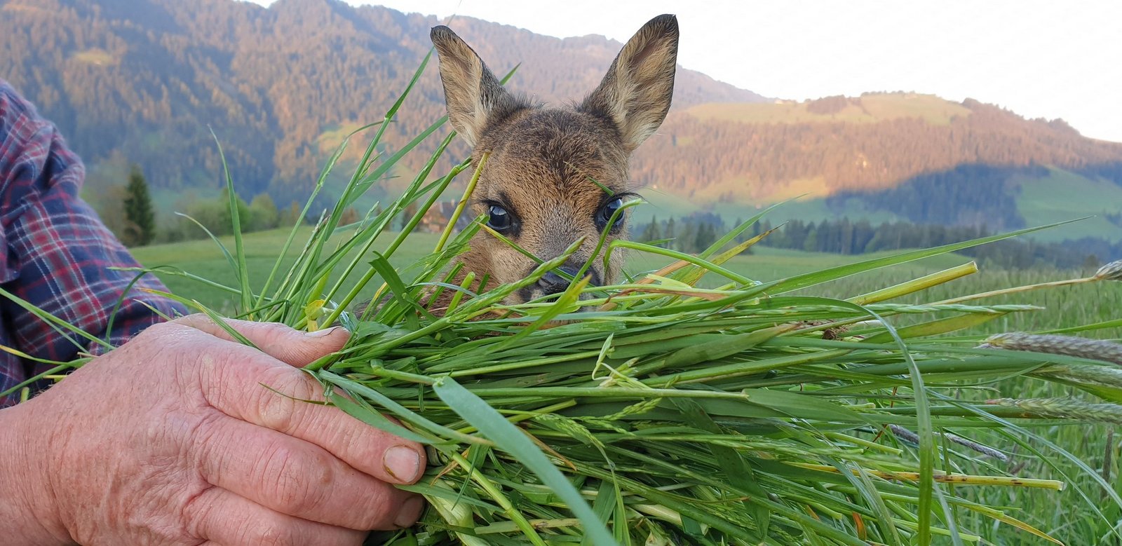 Jeden Frühling würden zahlreiche Rehgeissen ihre Kitze ins hohe Gras bringen, damit sich diese dort vor potenziellen Räubern verstecken können. Die Rehkitze hätten in ihren ersten Lebenswochen keinen Flucht-, sondern einen sogenannten Druckinstinkt.