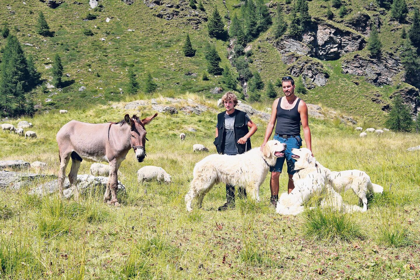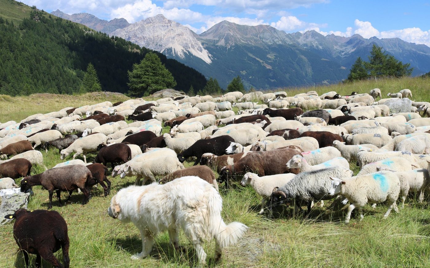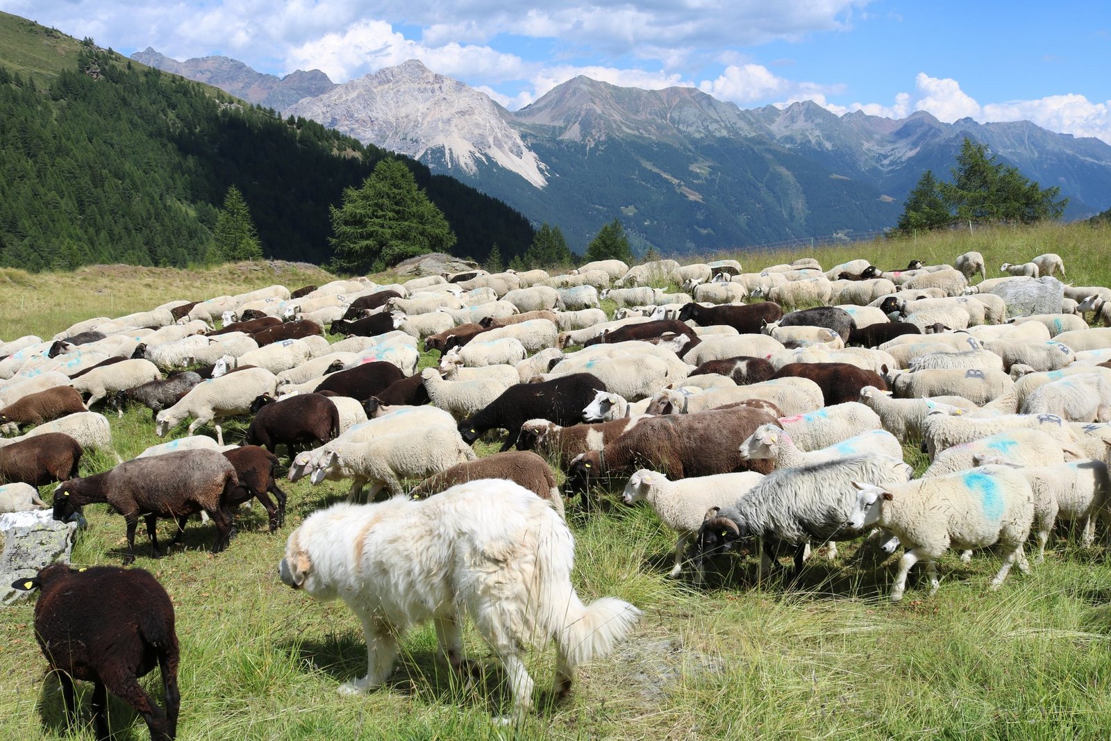Heuer konnte Tim Marchesi erstmals die 300 ha grosse Alp Canfinal (2000 bis 2400 m ü. M.) pachten. Der 18-jährige Junghirte Nicola Buzzetti betreut die Herde mit 500 Tieren mit vier Herdenschutz- und drei Treibhunden. Er unterteilt die grossflächigen Alpwiesen in sieben Sektoren in Tages- und Nachtweiden.