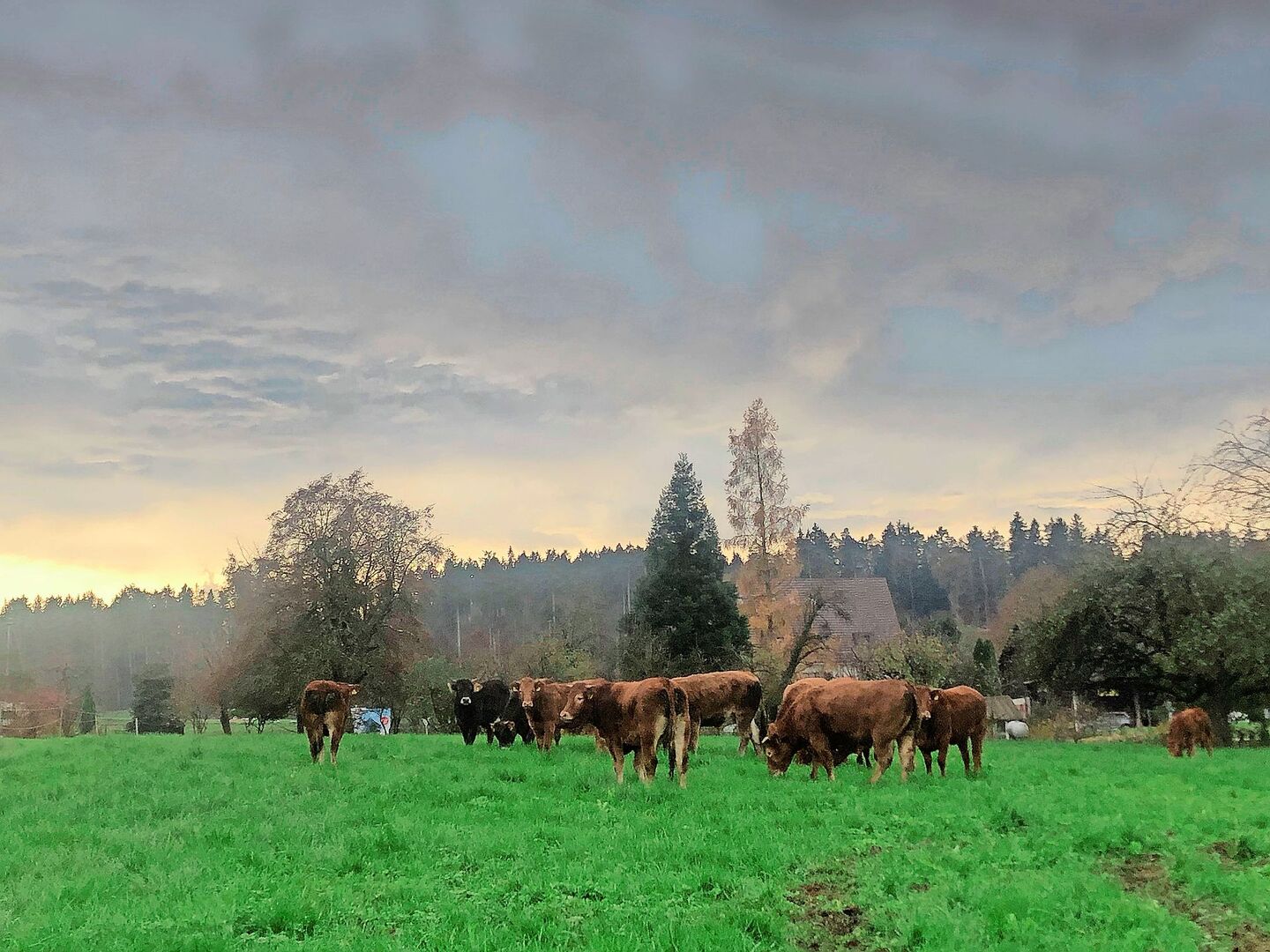 Kuhohren hören besser als wir und können ausserdem Geräusche wahrnehmen, die das menschliche Gehör nicht registriert. Also müssen unsere Kühe damals um einiges stärker erschrocken sein, als ich es ohnehin schon war. Ich dachte zuerst an eine Explosion oder Ähnliches. Jedenfalls stob die ganze Herde auseinander wie eine aufgeregte Hühnerschar, wenn ein Raubvogel naht. Die Tiere rannten orientierungslos auf die Weide zurück.