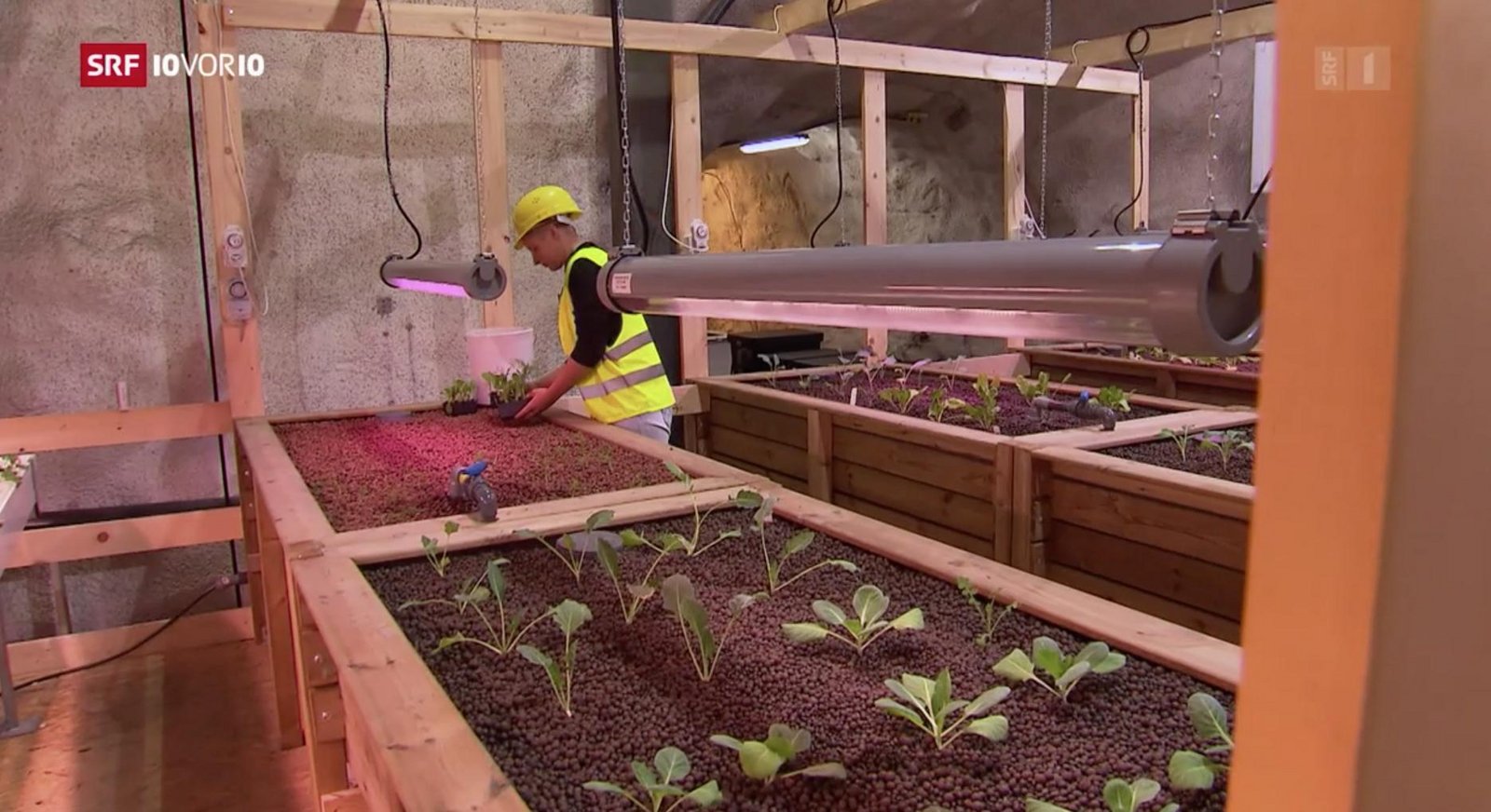 Auch Agroscope forscht an der Landwirtschaft unter der Erde, zeigt der Bericht von "10 vor 10". Forschungsbereichsleiter Christoph Karlen sieht die Herausforderung in der Belüftung. Der Vorteil des Untergrund-Systems liege in der ganzjährigen Anbauperiode, der Unabhängigkeit von Klimakapriolen und der Nähe zu den Verarbeitern und Konsumenten.