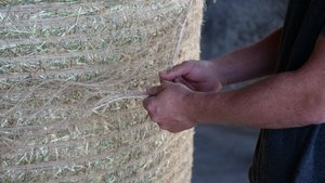 Urs Schneeberger: Mein erster Eindruck vom Jutenetz ist sehr positiv. Sowohl das Wechseln der Netzrolle als auch das Binden der Ballen und das Schneiden des Netzes verliefen problemlos. Meine Mitarbeiter und ich waren überrascht, wie gut alles funktionierte. Die Handhabung war vergleichbar mit herkömmlichen Rundballennetzen aus Plastik.