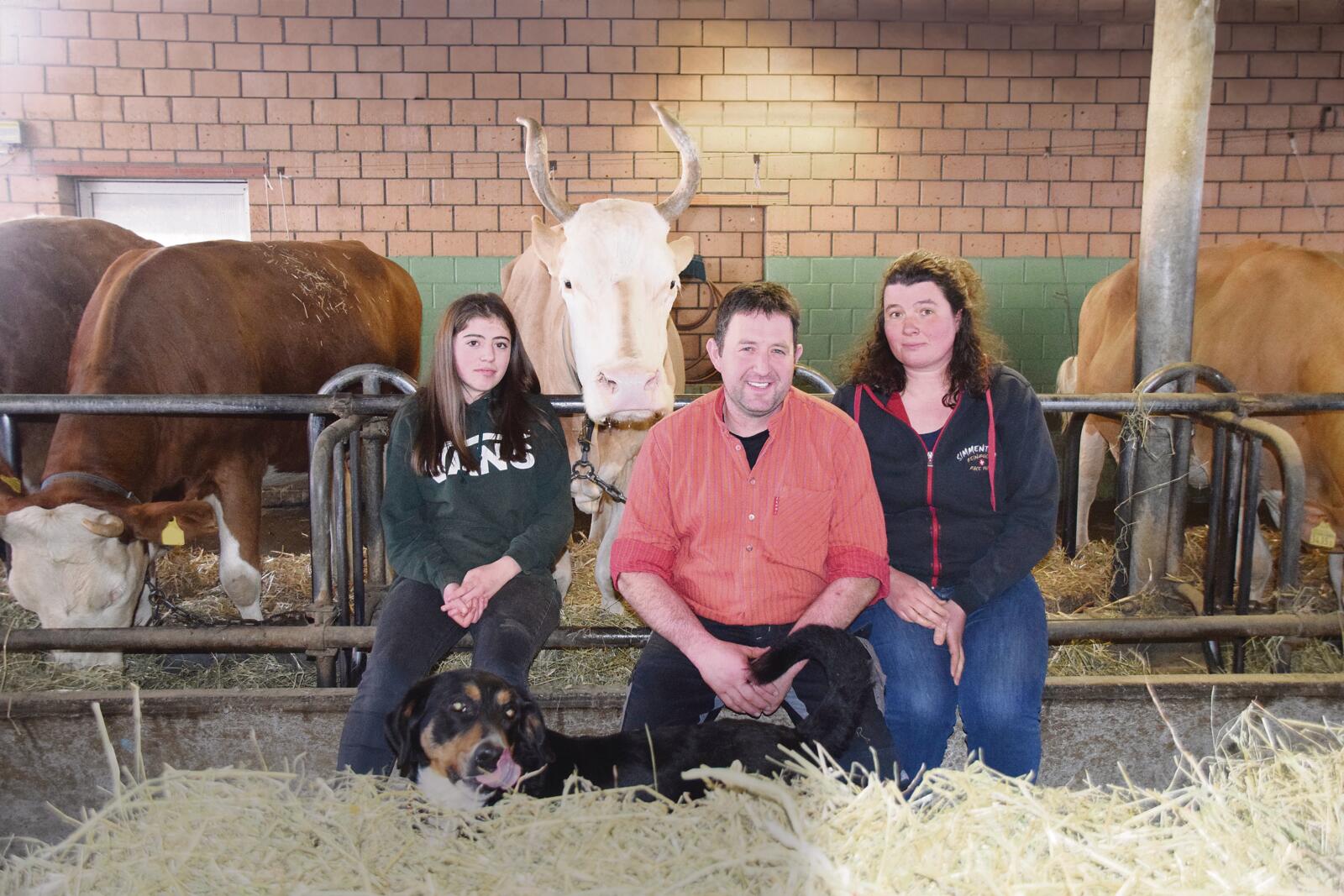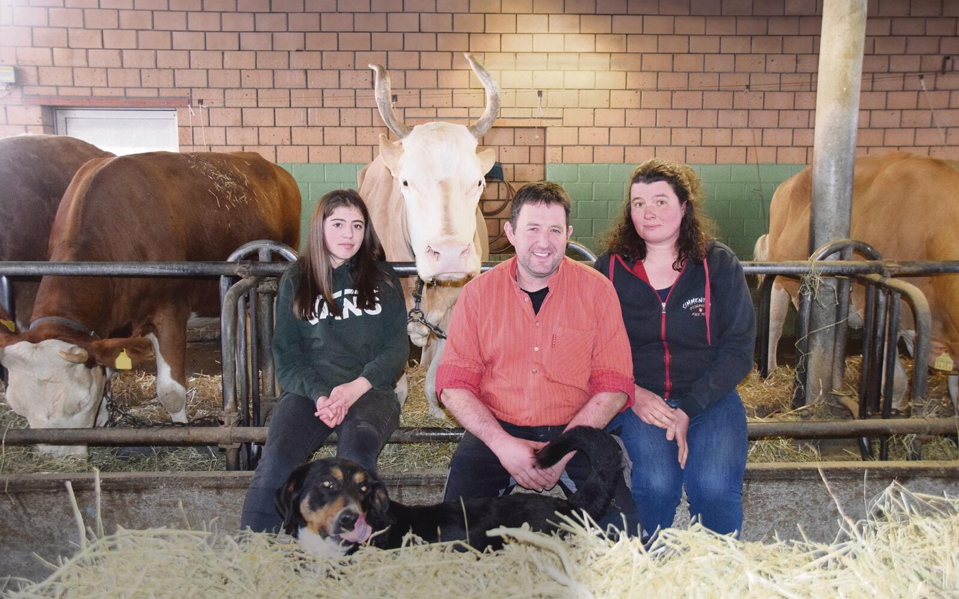 Auf 1000 m ü. M. bewirtschaften Marcel und Manuela Hirschi zusammen mit ihren Kindern Manuel und Lorena einen 25 ha grossen Milchwirtschaftsbetrieb. Ein einzigartiges Panorama trifft man hier oben an. Schaut man gegen Osten, thronen der Hohgant und die Schrattenfluh. Gegenüber des Betriebs hat man einen herrlichen Blick auf die Nordseite des Gurnigel-Gebiets. Im Anbindestall auf zwei Lägern stehen 28 Kühe, fast alles reine Simmentaler, nur eine Holsteinkuh steht noch im Stall. «Warum nicht?», lacht Marcel Hirschi. «Die Holsteinkuh gehört Lorena», sagt er. Und noch eines fällt auf: Alle Kühe sind frisch geschoren. «Ich dachte, wenn schon jemand von der BauernZeitung kommt, scheren wir sie, das macht einen besseren Eindruck», sagt Hirschi bescheiden.