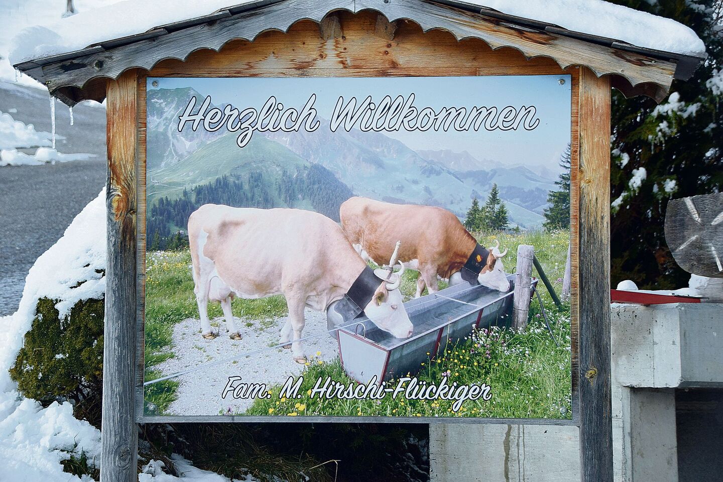 Tierbestand: 28 Kühe und 30 Stück Jungvieh plus 45 Legehennen. Die Milch wird ¾ zu Le-Gruyère-Käse verarbeitet und ¼ an die Cremo geliefert.