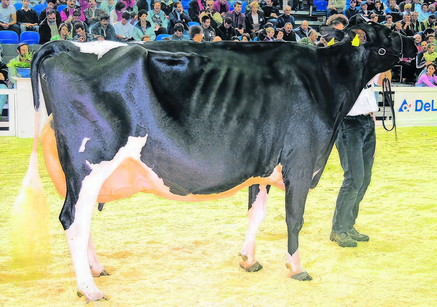 Kehren wir noch einmal zurück ins Jahr 1982: Damals kam es in Bulle zu einer Jahrhundertversteigerung, denn die Familie Oscar Dupasquier wanderte nach Kanada aus. In der Markthalle Bulle wurden alle ihre Tiere versteigert. Drei Tiere gingen an dieser Gant für mehr als 30 000 Franken weg. Eine von ihnen war die bekannte Expo-Bulle-Siegerin von 1981: Riquita. «Es kamen an dieser Auktion so viele Leute, dass einige davon auch auf die Dächer der Expo-Bulle-Hallen stiegen, um noch etwas sehen zu können. Leider gingen dabei auch einige Dachziegel zu Bruch, die wir nachträglich bezahlen mussten», sagt Oscar Dupasquier in einem Video zur 125-Jahr-Feier von Holstein Switzerland lachend. Die erste Schweizer Holsteinkuh, die auch im Ausland für Furore sorgte, war die Leader-Tochter Rebeka von Alexandre und Denise Papaux aus Les Ecasseys FR. Rebeka gewann 2003 die Expo Bulle und im Jahr 2004 holte sie eine gute Platzierung an der Europaschau in Brüssel. Im selben Jahr konnte Rebeka zum zweiten Mal mit dem Siegertitel an der Expo Bulle auftrumpfen.