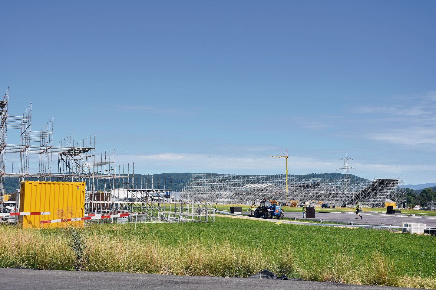 Die Vorbereitungen für das ESAF laufen schon lange auf Hochtouren. Letzte Woche konnte man einen Augenschein auf dem Festgelände nehmen. Zurzeit ist man daran, die Tribünenelemente der Arena, die über 50 000 Besucherinnen und Besucher fassen wird, aufzustellen. Die Lebendpreise werden dann ab dem 12. August auf dem Gelände aufgestallt. Von da an muss Jürg Degen seinen Siegermuni dort jeden Tag waschen und mit ihm das Laufen üben. Vor allem das Militär ist am ESAF stark eingespannt. Eingesetzt wird es beim Aufbau, beim Abbau und bei der Verkehrsführung. Insgesamt 4000 Armee-Arbeitstage leiste das Militär beim ESAF.