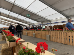 Auch wenn in der Halle schon emsiges Treiben herrscht – es müssen noch letzte Einrichtungen aufgestellt werden und die Viehzüchter führen ihre Tiere in die Hallen – es ist doch noch deutlich ruhiger, als es in den kommenden Tagen werden wird. Tausende von Besucherinnen und Besuchern werden jeden Tag an Santos vorbeigehen und staunen.
