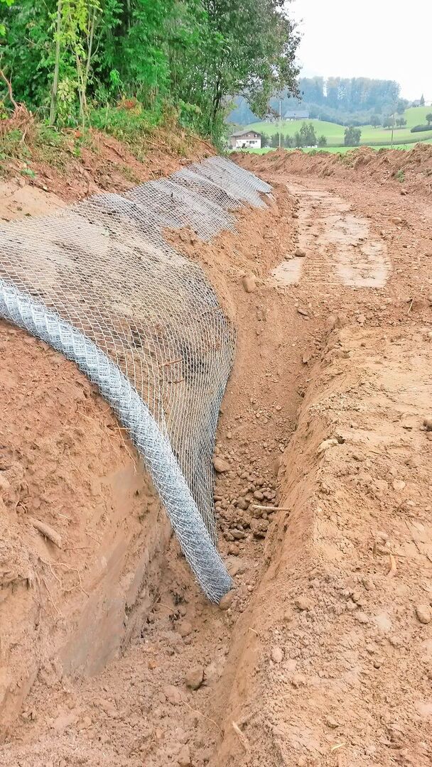Dort, wo die Langete höher liegt als das umgebende Gelände, können Löcher in den Seitendämmen zu Überschwemmungen führen. Auch die traditionellen Wässermatten seien betroffen, so Simon Grossenbacher: «Statt dass wir über die Kanäle das Wasser aufs Land leiten können, fliesst es wegen des Bibers stellenweise in die Bäche zurück.» Gegen Biberschäden etwas zu unternehmen, sei indes nicht so einfach. Grössere Bäume am Ufer oder Hochstämmer in Gewässernähe werden im Langetental mit Manschetten aus Zaundraht geschützt. Zwischen Fluss und Hochwasserdamm eingegrabene Drahtgeflechte halten Biber davon ab, den Damm zu durchbrechen. Aber, «der Gewässerraum ist grundsätzlich geschützt und man darf darin nicht bauen», gibt der Landwirt zu bedenken. Für jede Massnahme brauche es ein Gesuch, «damit füttert man die Amtsstellen und es müssen immer mehr Wildhüter eingestellt werden, um die Anfragen zu bewältigen», so seine Beobachtung. Es komme ihm so vor, als renne man momentan von einer Feuerwehrübung zur anderen, ohne langfristige Lösungen zu finden. «Wir haben hier zu viele Biber, das ist klar», ist Grossenbacher überzeugt. Wichtig sei, die Tiere zu vergrämen, bevor sie eine Burg bauen – denn diese steht unter Schutz und dürfte nur mit kantonaler Bewilligung angetastet werden. Um weitere Löcher in Uferböschungen und Hochwasserdämmen zu verhindern, habe man auch schon den Bau künstlicher Biberbauten diskutiert. «Vor einem Jahr hatten wir eine Begehung vor Ort mit verschiedenen Akteuren, aber nach wie vor fehlt die Bewilligung dafür.»