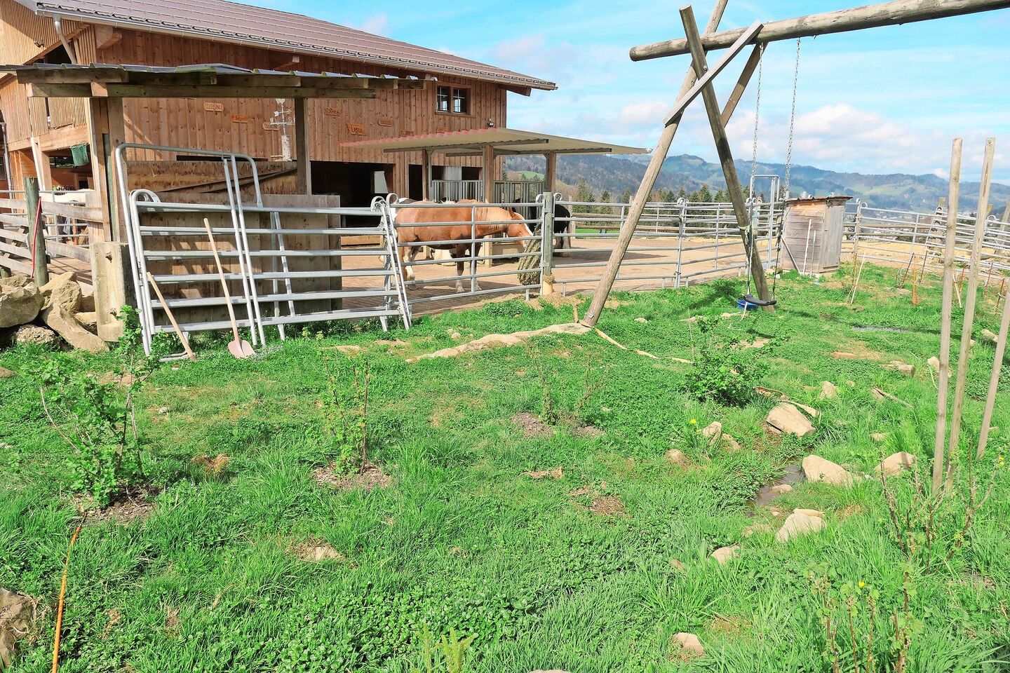 Mit der Pferdepension hat sich auf dem Kabisboden ein weiteres Standbein entwickelt. Der grosszügige Offenstall mit Auslauf bietet Platz für insgesamt 10 bis 12 Pferde, eigene und betreute. «Für uns stimmt der Mix aus den verschiedenen Betriebszweigen», sagt Hansueli Frey. «Auch dass wir schwerpunktmässig auf die Truthennen gesetzt haben, hat sich bewährt.»