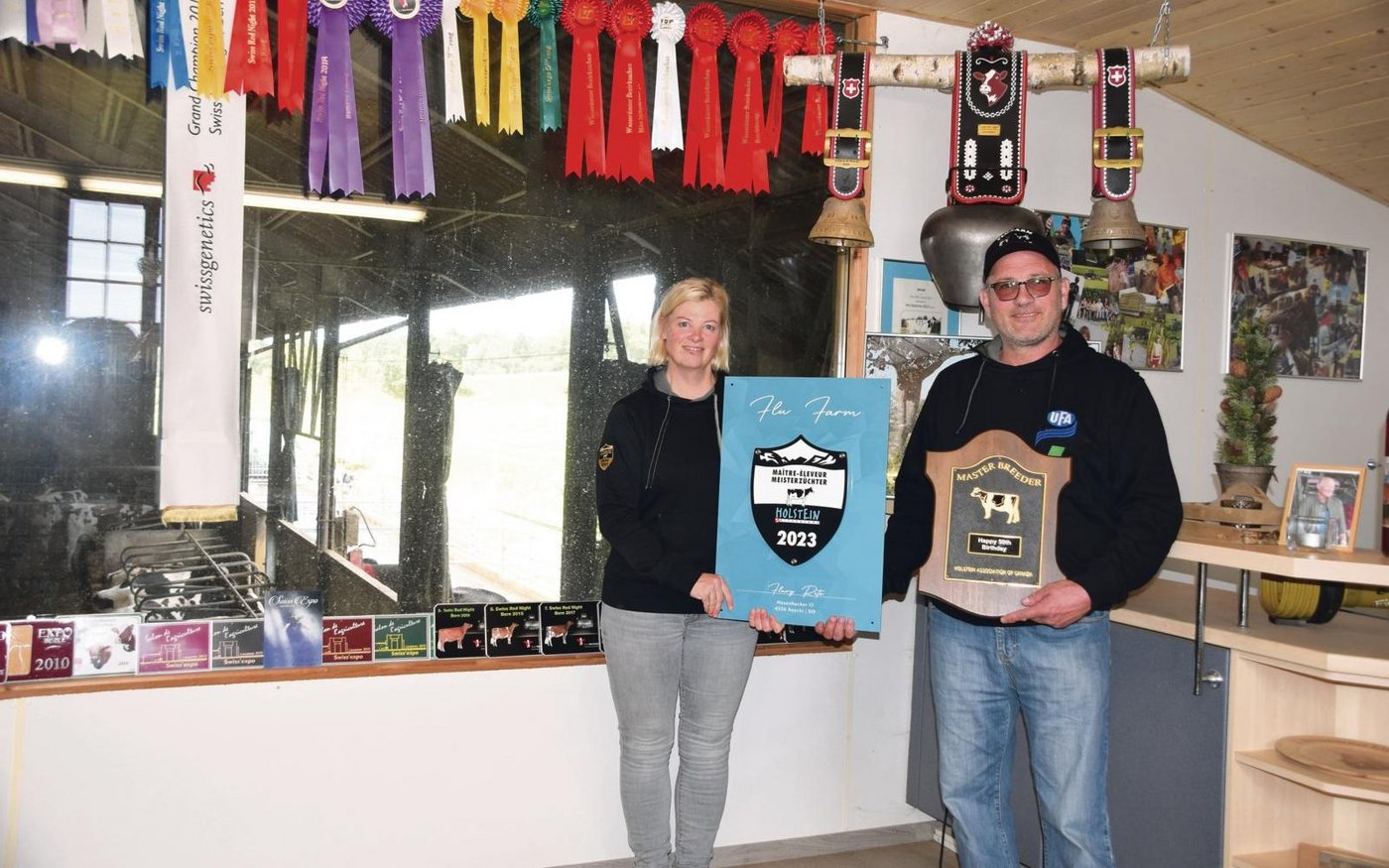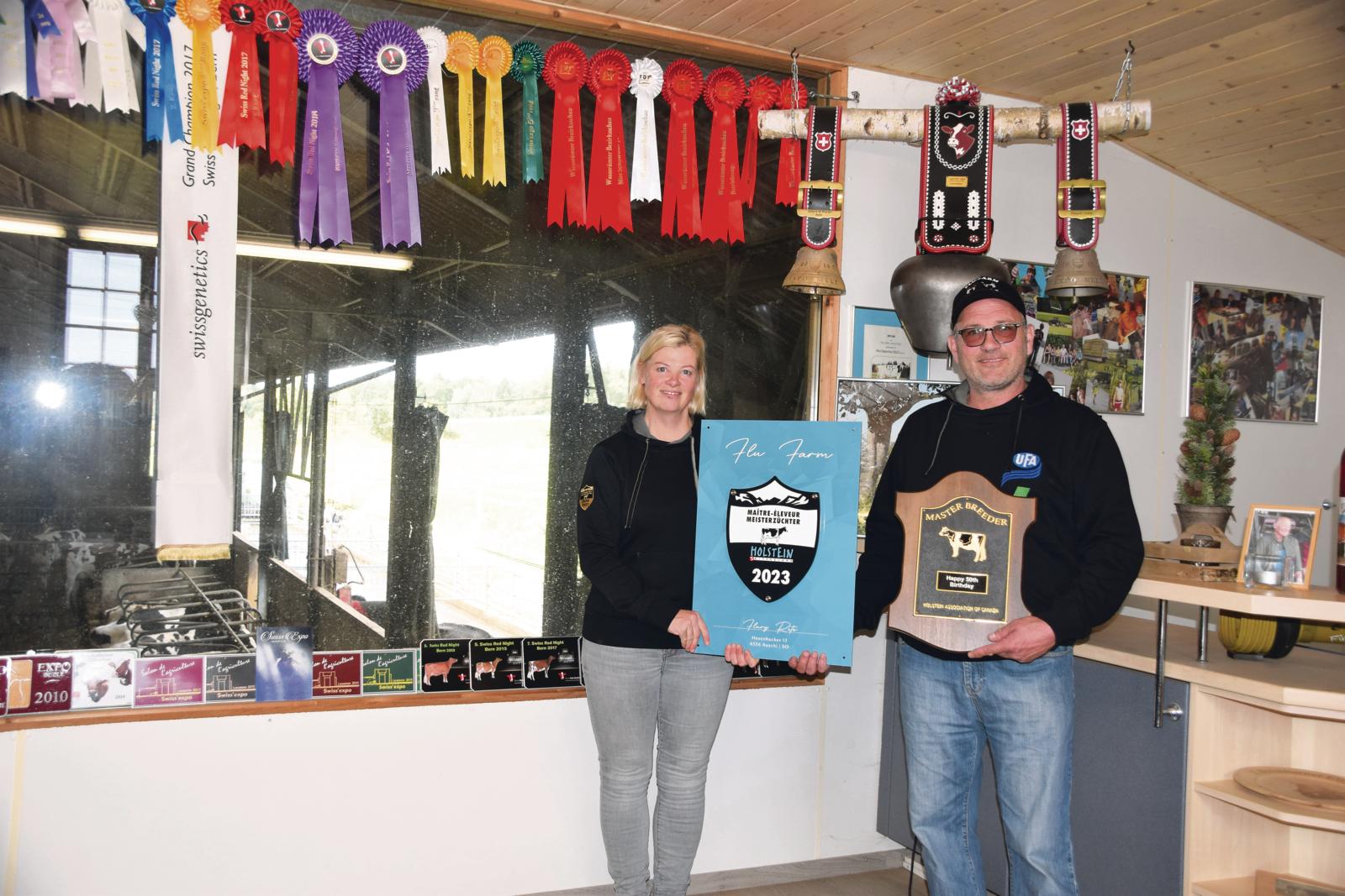 Es ist ein Titel, den jeder Holsteinzüchter gerne in seiner Sammlung hätte, es ist eine Auszeichnung, die nur die wenigsten bekommen: Reto und Monika Flury aus dem solothurnischen Aeschi haben diesen Titel erhalten, sie sind Holstein-Meisterzüchter 2023. Ausgezeichnet wurden Flurys von Holstein Switzerland für ihre Zuchterfolge, ihre harte Arbeit und für ihre grossartige Holsteinherde. «Für mich als passionierten Züchter ist der Holstein-Meisterzüchter-Titel nicht nur eine Genugtuung, sondern es ist für mich auch eine grosse Freude und eine grosse Ehre», sagt Reto Flury anerkennend.