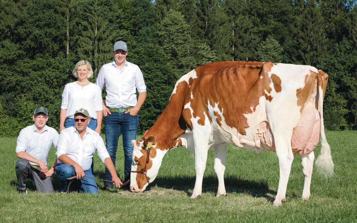 Einmal im Jahr kürt Holstein Switzerland seine Meisterzüchter. Nur die besten fünf Betriebe bekommen jeweils diese Auszeichnung. Dieses Jahr erhielten Reto und Monika Flury aus Aeschi SO mit ihren beiden Söhnen Tim und Nils diesen Titel vom Verband zugesprochen. Für die Familie Flury bedeutet der Meistertitel nicht nur eine Anerkennung für ihre tägliche Arbeit, sondern auch eine Genugtuung, hegen sie doch eine grosse Passion für die Holsteinkuh. Auf ihrem Betrieb halten sie zirka 70 Kühe. Einige erreichten bereits die 100 000er-Marke.
