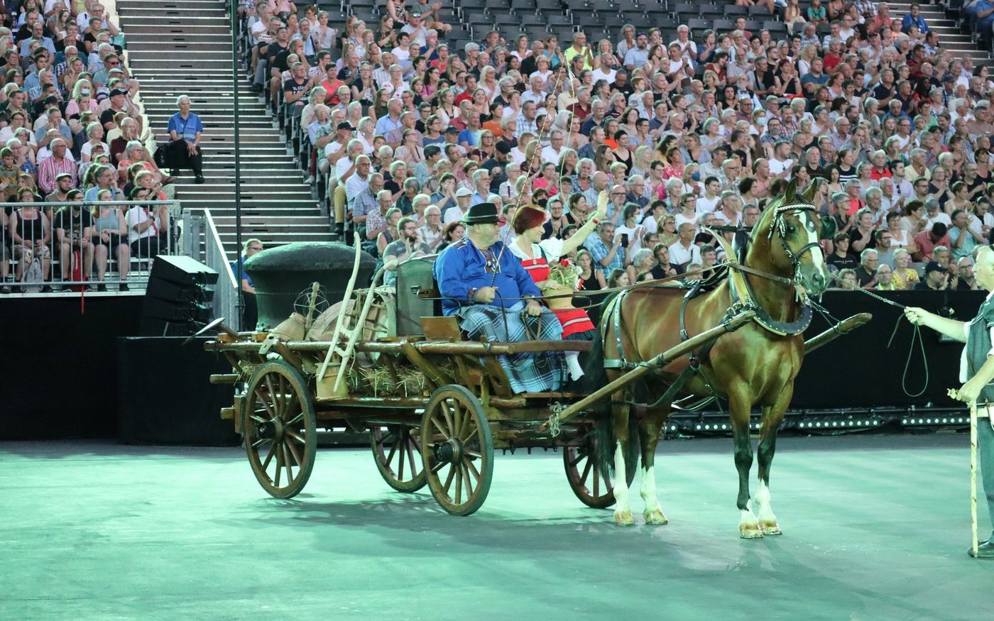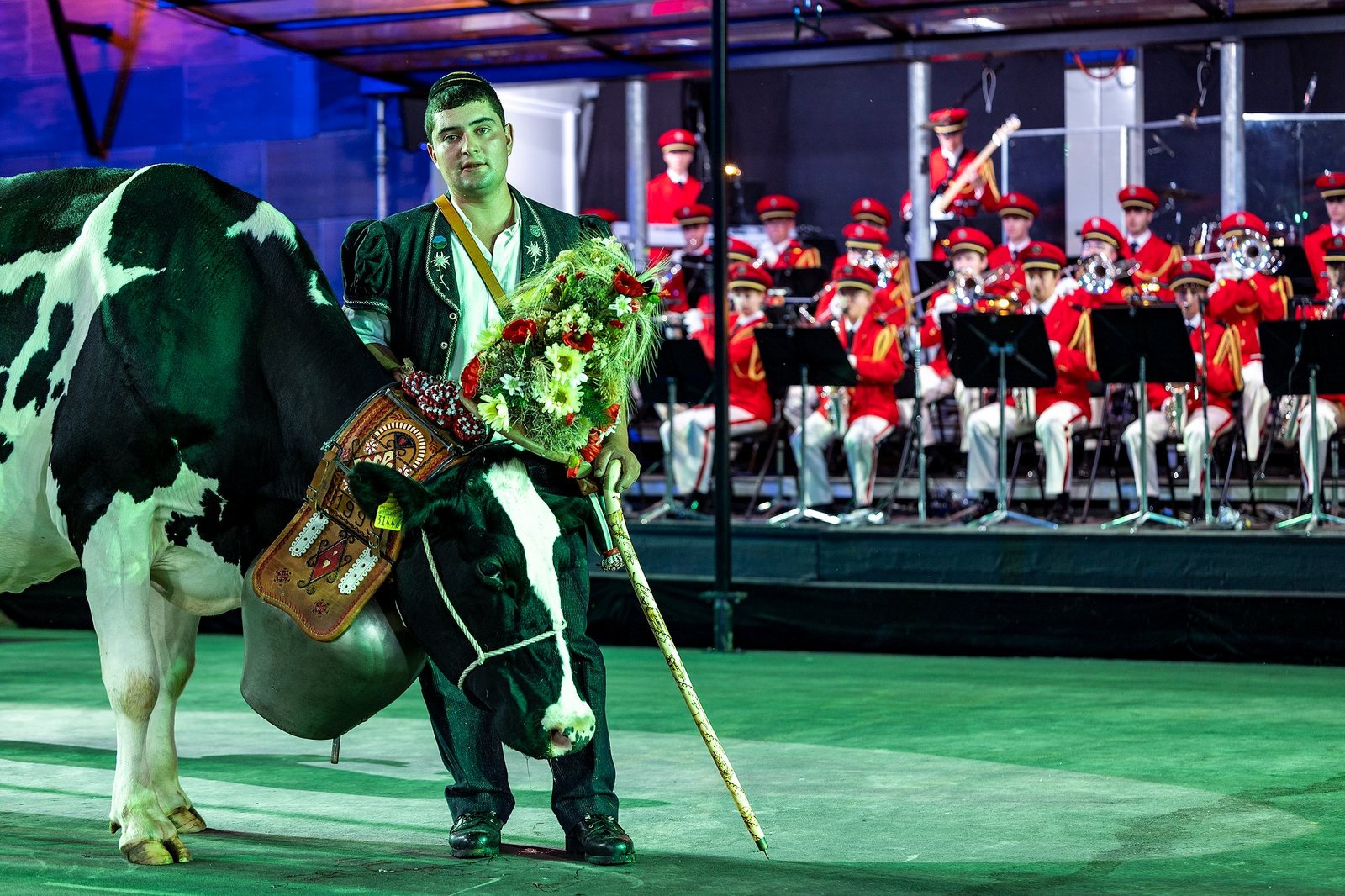 Wer glaubt, dass ein Tattoo nur Dudelsäcke zu bieten hat, geht in die Irre. An der Basel Tattoo Jubiläumsausgabe 2022, die vergangene Woche in der Kaserne Basel über die Bühne ging, trat die «crème de la crème» der internationalen und heimischen Blasmusik auf. Zu sehen waren königliche Garden, rockige Dudelsackklänge und ein Trommelspektakel des Top Secret Drum Corps – und 14 Kühe sowie ein Freiberger.