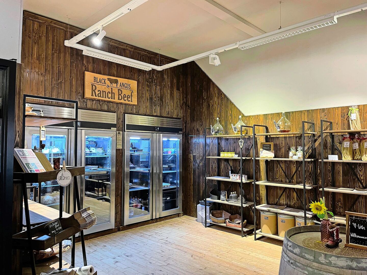 «Es hat fünf Metzger gedauert, bis wir den richtigen fanden, der zu uns und unseren Anforderungen für die Verarbeitung unseres Ranchbeefs passt, meint Schreiber. Nun hätten sie aber einen «Metzger mit Berufsstolz» gefunden, und so vermarkten wir einen grossen Teil der Tiere im Hofladen und in der Gästebewirtung. Zu kaufen gibt aber nicht Brustspitz oder Lenden, sondern «Special Cuts» wie Flat Iron, Tomahawk, Dry aged Côte de Boeuf oder Porterhouse Steak. «Die Leute mögen das », beobachtet der Bio-Landwirt. Neben den Fleischspezialitäten gibt es hausgemachte Pastavarietäten, Bio Eier, frisches Brot, Bio-Kartoffeln, Geschenkkörbe und weitere Bio-Produkte von anderen Biobetrieben.
