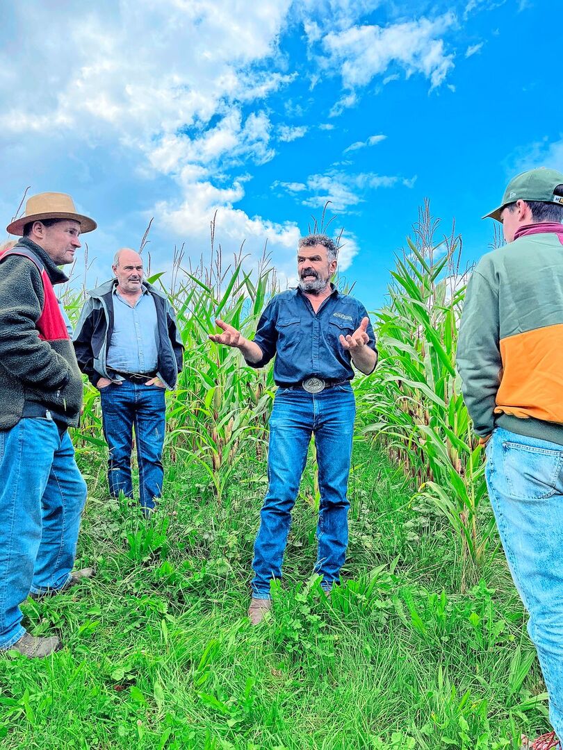 Auch im Ackerbau auf der Stone Ranch steckt viel Überlegung. Schreibers bewirtschaften alle Ackerkulturen mit Untersaaten in die Hauptkulturen, ausser bei den Bio-Kartoffeln. Auf dem Betriebsrundgang zeigt Stefan Schreiber eine Maisparzelle, die auch mit einer Kunstwiesenuntersaat einigermassen gut gelungen ist, wie er sagt (siehe Bild). Beim Getreide in weiten Reihen haben wir gute Erfahrungen mit Untersaaten gemacht, mit dem Vorteil, dass kurz nach Ernte der Hauptkultur bereits geweidet werden kann, erläutert der Aargauer auf dem Betriebsrundgang.