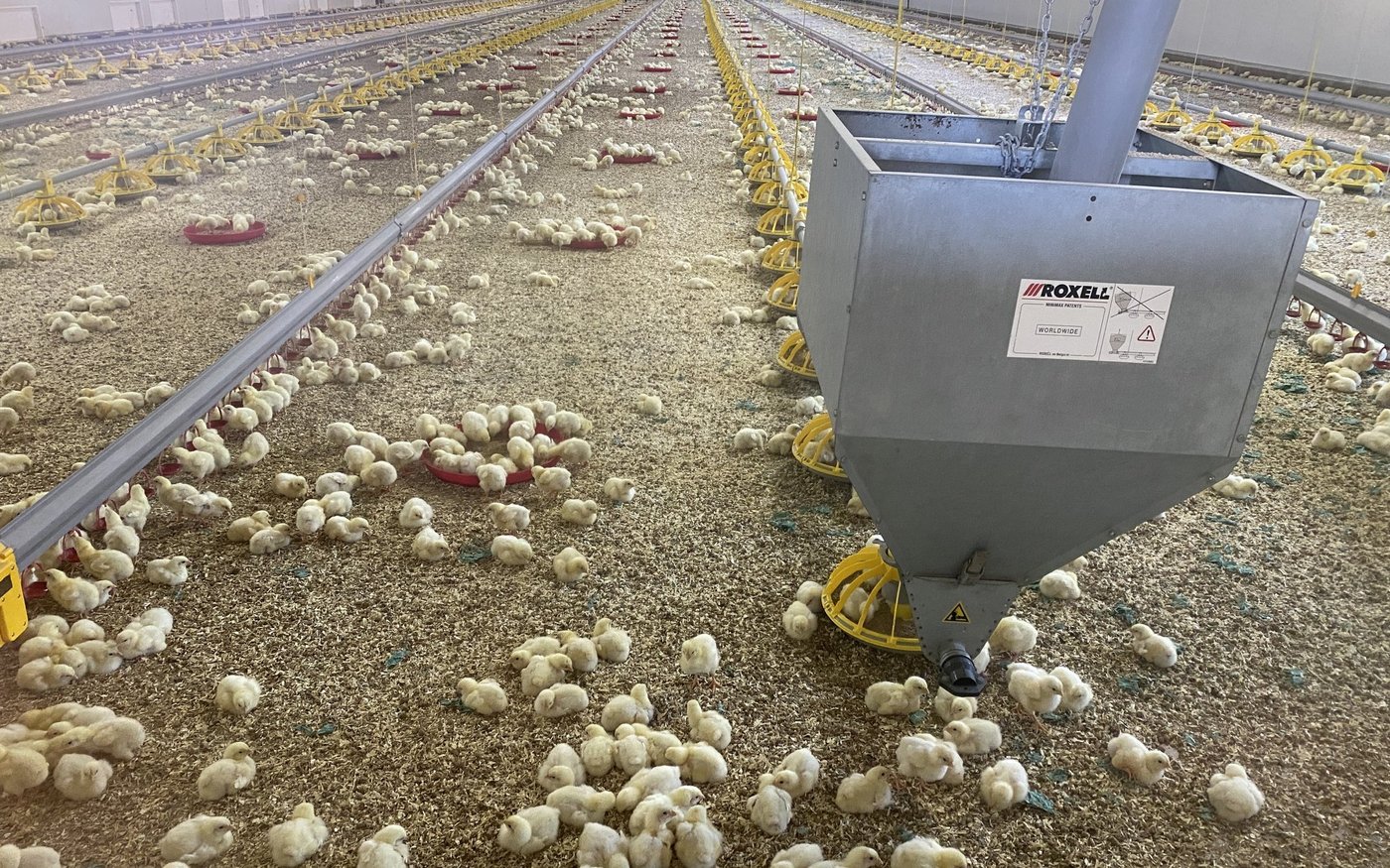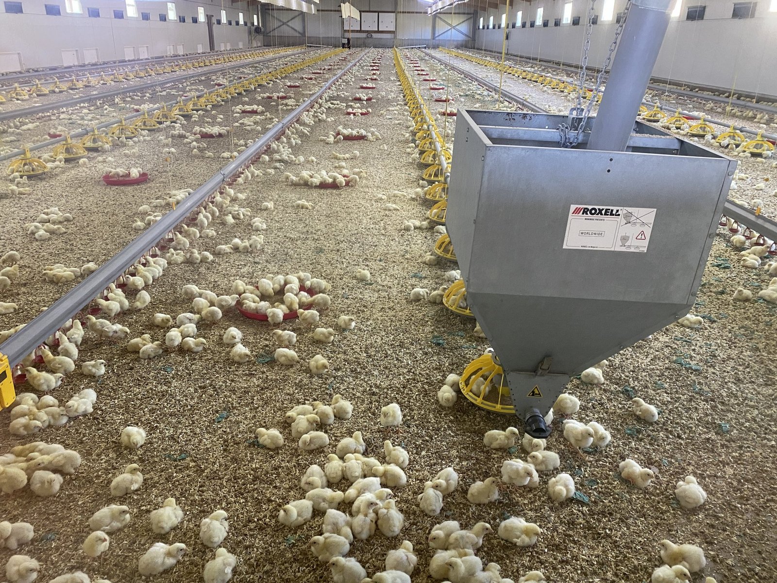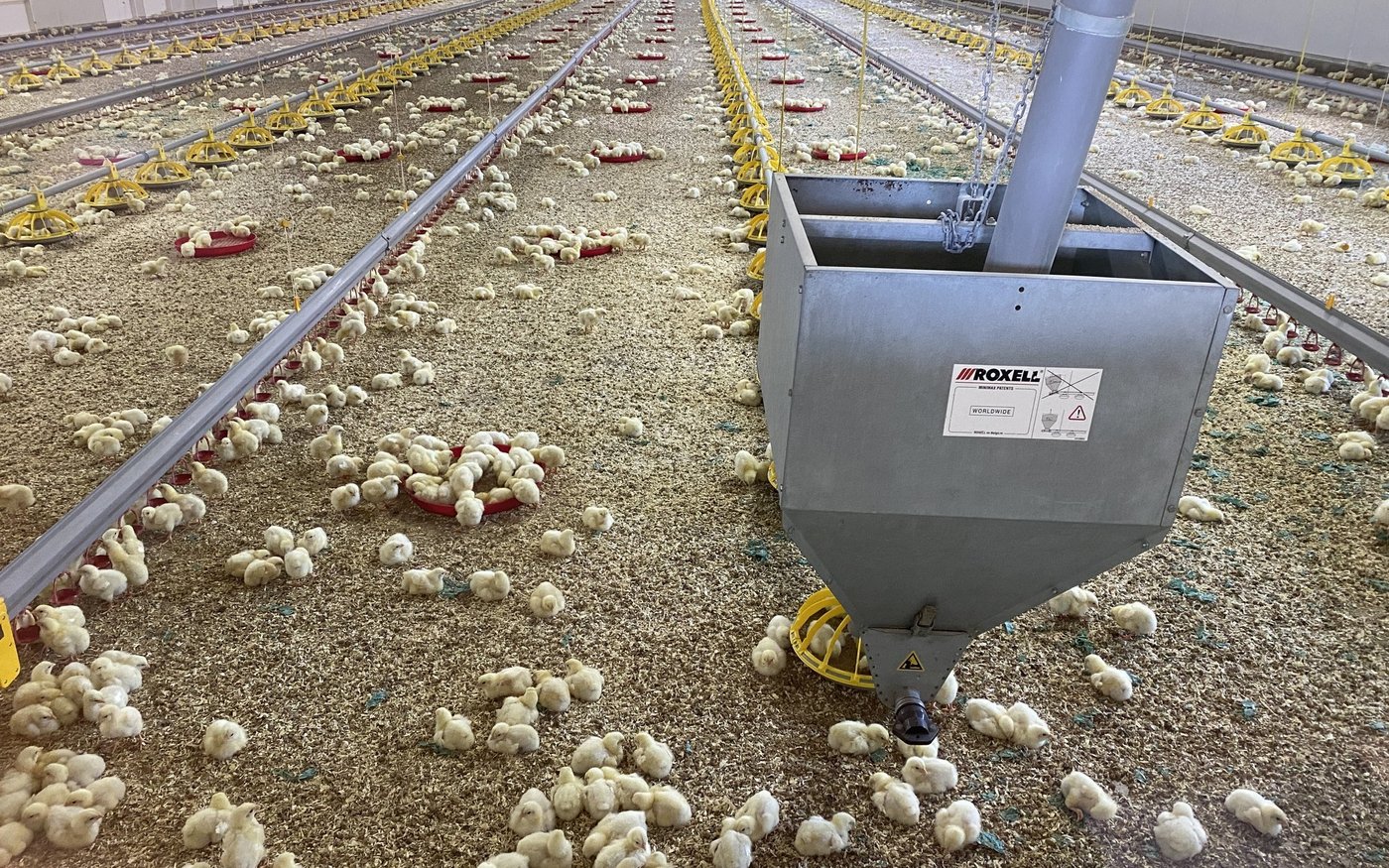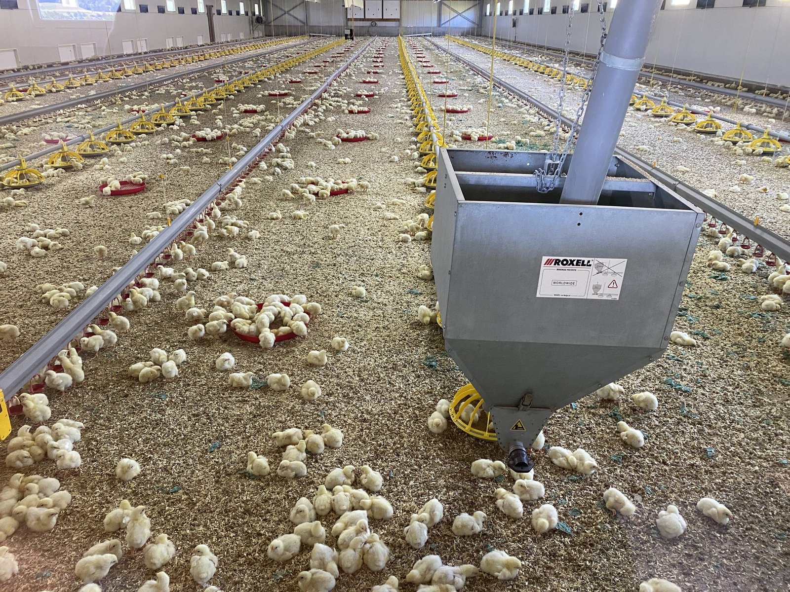 Der 1222 m2 grosse Stallneubau bietet für die wenige Tage alten und 40 g leichten Küken noch reichlich Platz. Die maximale Besatzdichte von 30 kg pro Quadratmeter (EU: 42 kg/m2) würde auch später mit 2 kg je Poulet nicht überschritten werden, so Grod. Mit dem Tierwohlprogramm BTS (besonders tierfreundliche Stallhaltungssysteme) biete der Landwirt zusätzlichen Komfort: Die Tiere erhalten Sitzgelegenheiten, Einstreu auf dem Boden, frische Luftzufuhr und Tageslicht sowie Zugang zu einem geschützten Aussenklimabereich mit einer zusätzlichen Fläche von 20 % der Stallinnenfläche.
