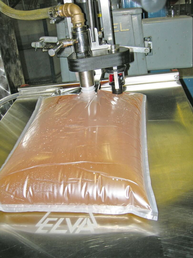 Danach werden die Säfte durch die Pasteurisation haltbar gemacht und heiss in die gewünschten Gebinde abgefüllt. Schon länger nehmen die Einweg-Gebinde «bag in box» einen grossen Anteil auf dem Markt ein (siehe Bild). Seit einigen Jahren können auch hitzebeständige PET-Flaschen abgefüllt werden. Kleingebinde erfreuen sich steigender Beliebtheit als Alternative zu allen anderen Getränken im vielfältigen Angebot.