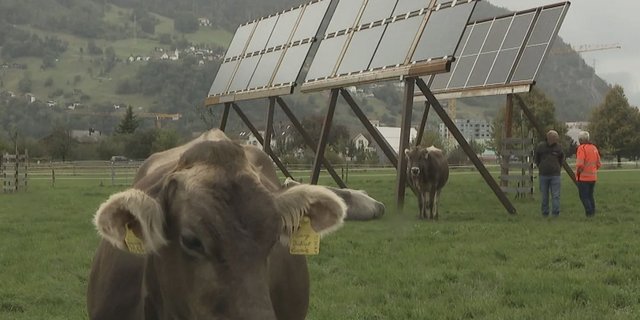 Kühe weiden unter Solartischen