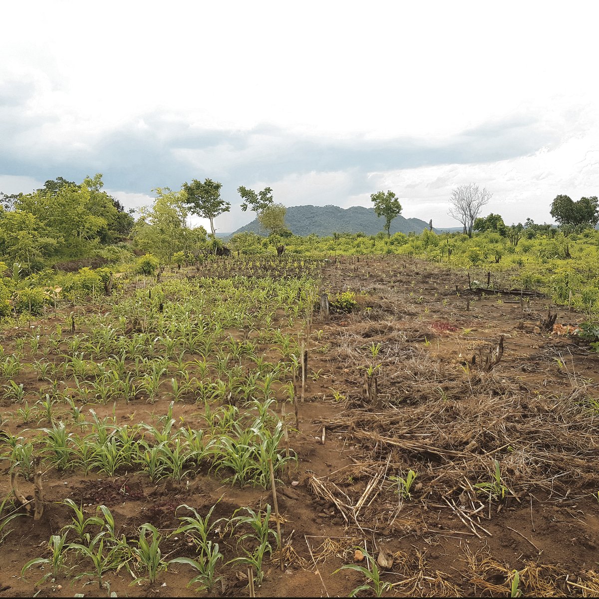 Im Dezember bereiten die Männer und Frauen gemeinsam die Felder vor, um die nächsten Kulturen anzubauen. Im Nor-den wird hauptsächlich Mais, Bohnen, Maniok und etwas Sorghumhirse angebaut.