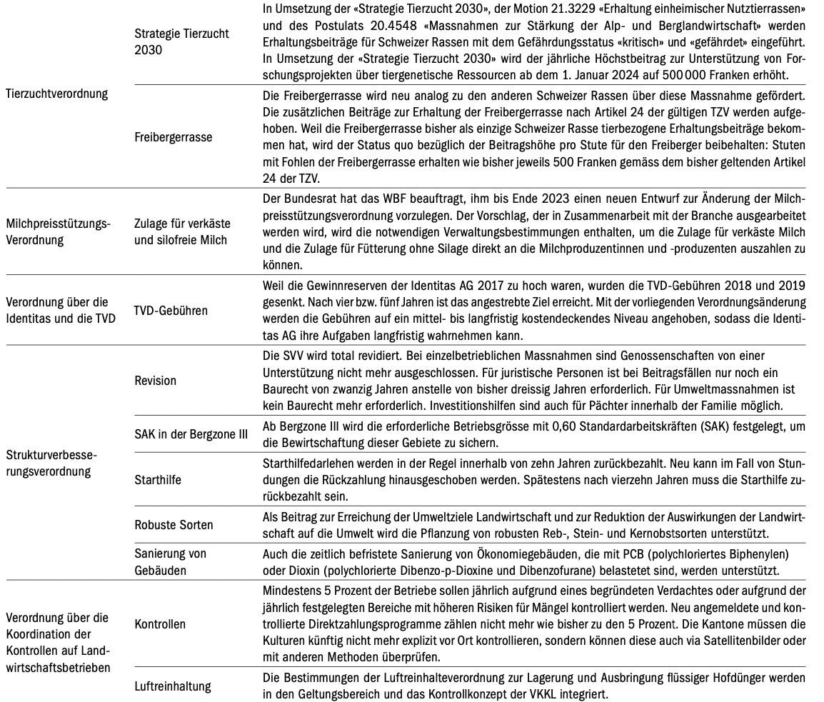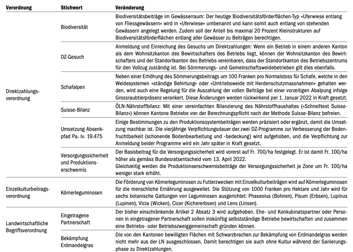 Per 1. Januar 2023 hat der Bundesrat Änderungen an 19 Verordnungen vorgenommen. Das Regelwerk der Land- und Ernährungswirtschaft wurde wieder einmal gründlich aufgeschüttelt.