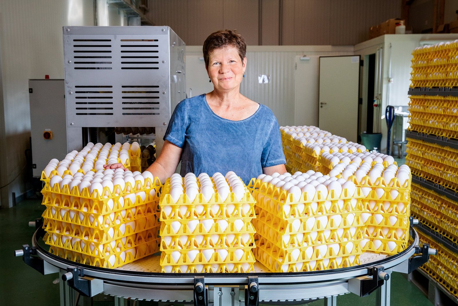 Das Talent für neue Ideen für den Betrieb scheint sie der nächsten Generation weitergegeben zu haben. Oberhalb des ehemaligen Milchviehstalls steht seit zwei Jahren ein topmoderner Hühnerstall, Eier aus Freilandhaltung werden hier produziert. «Die Idee kam von meinem Sohn», sagt Agnes Hügli. «Man muss die Jungen machen lassen».
