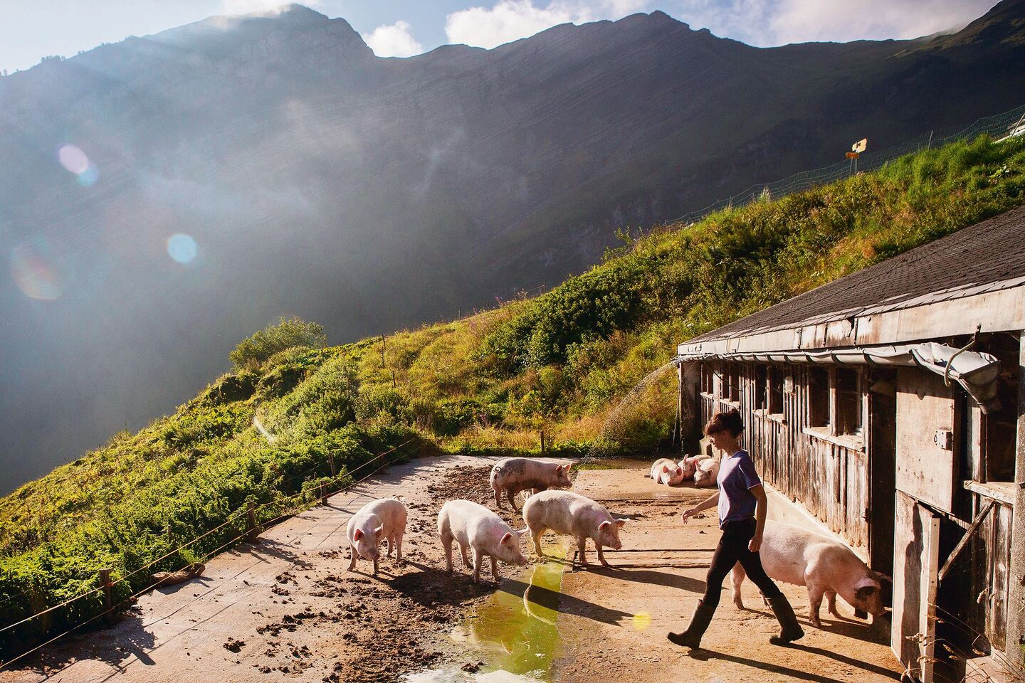 Innerhalb dieser kleinen Unendlichkeit rasen die Tage nur so dahin: Kaum steht man auf, fällt man auch schon wieder ins Bett, und ehe man sich versieht, ist man aus der üblichen Struktur von Wochentagen herausgefallen und rutscht quasi haltlos über die Alpwiesen und durch die Sommertage.